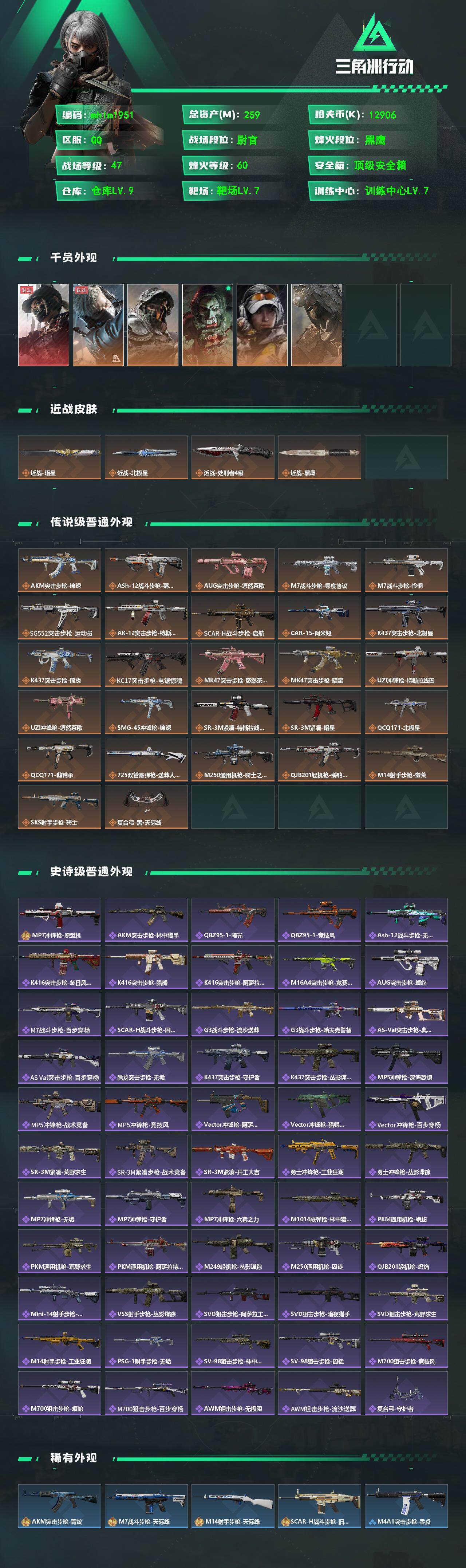 259m总资产-12906k哈伏币-60烽火等级-黑鹰-47战场等级-尉官【