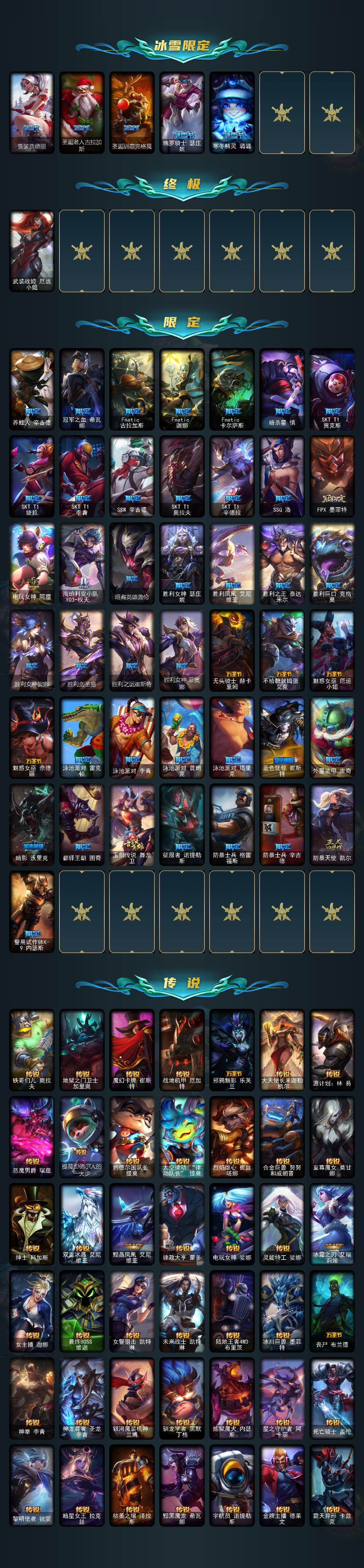 单双黄金段位-172英雄-481皮肤-286炫彩-1终极-30神话-65限定-52传说-106史诗