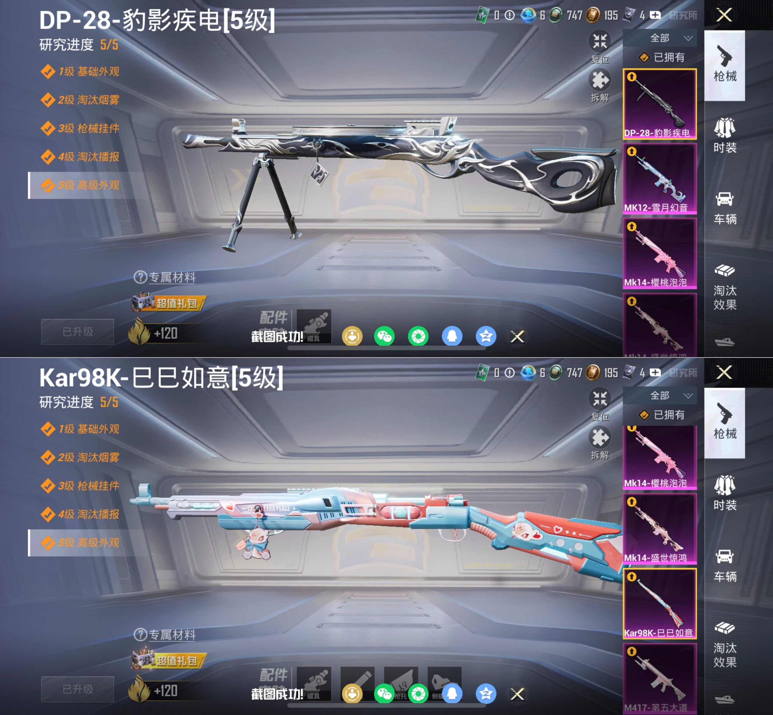 1神装-5粉装-6特效枪-69套装-114枪皮-5王牌印记-不朽星钻Ⅴ-37767热力值