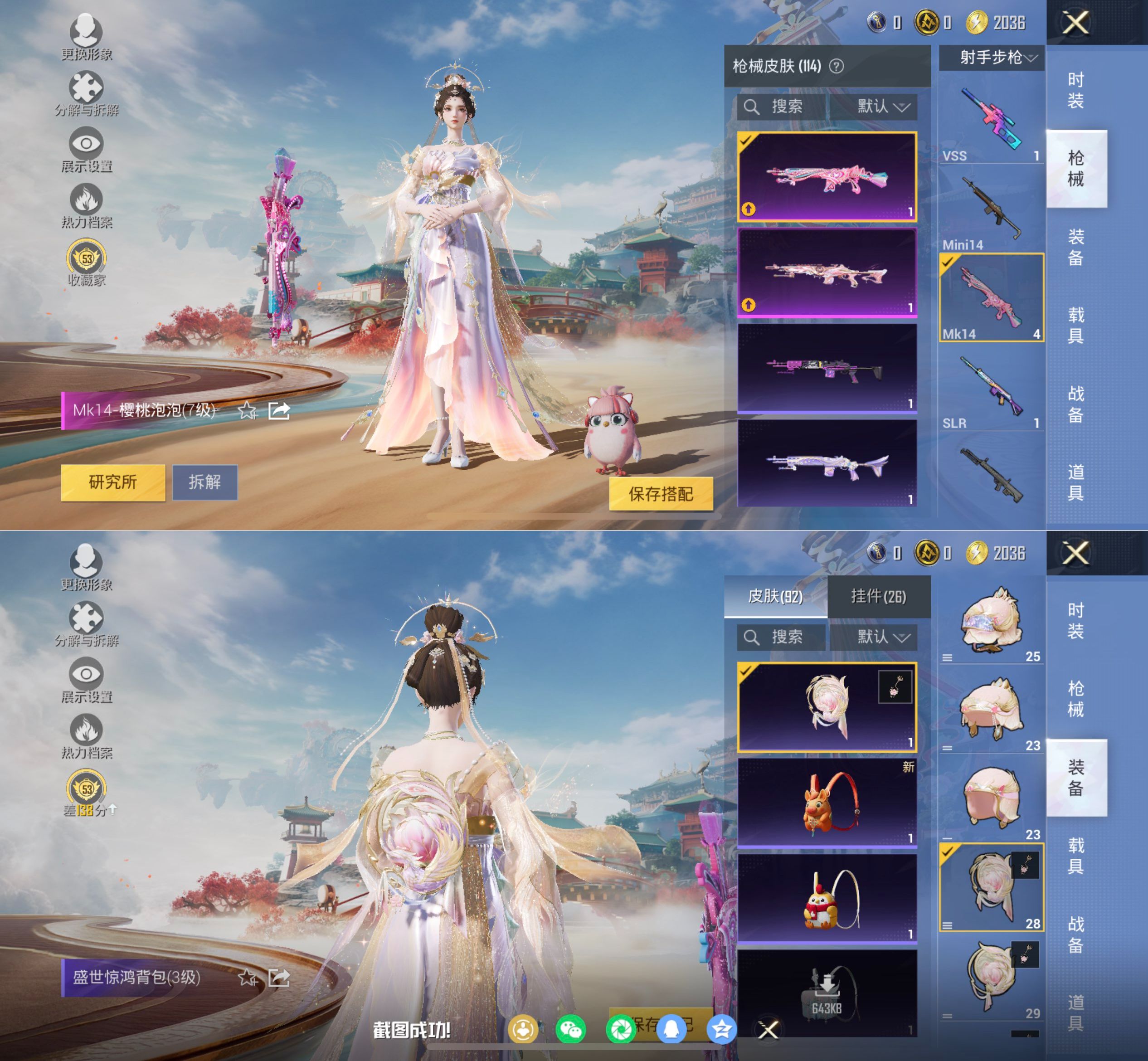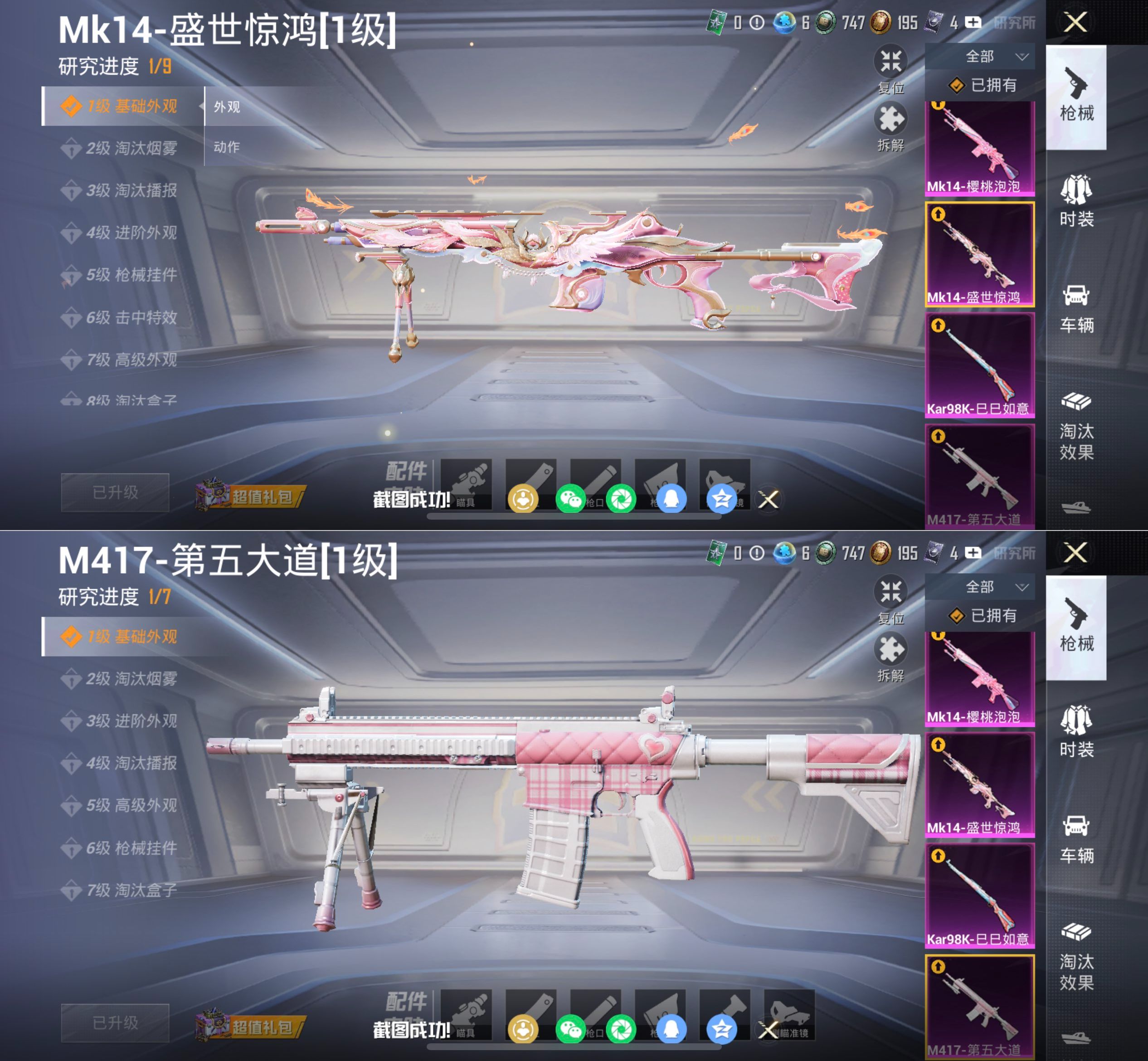 【2级红装 5粉装 6特效枪】无二次包 苹果手Q-1神装-5粉装-6特效枪-69套装-114枪皮-5王牌印记-不朽星钻Ⅴ-37767热力值【1神装】盛世惊鸿-云鸾[2级]【5粉装】角色-智耀战神,角色-时光之吻,第五大道,角色-冷漠罗丽,角色-樱桃泡泡【6特效枪】M417-第五大道[1级],Kar98K-巳巳如意[5级],Mk14-盛世惊鸿[1级],Mk14-樱桃泡泡[7级],12-雪月幻音