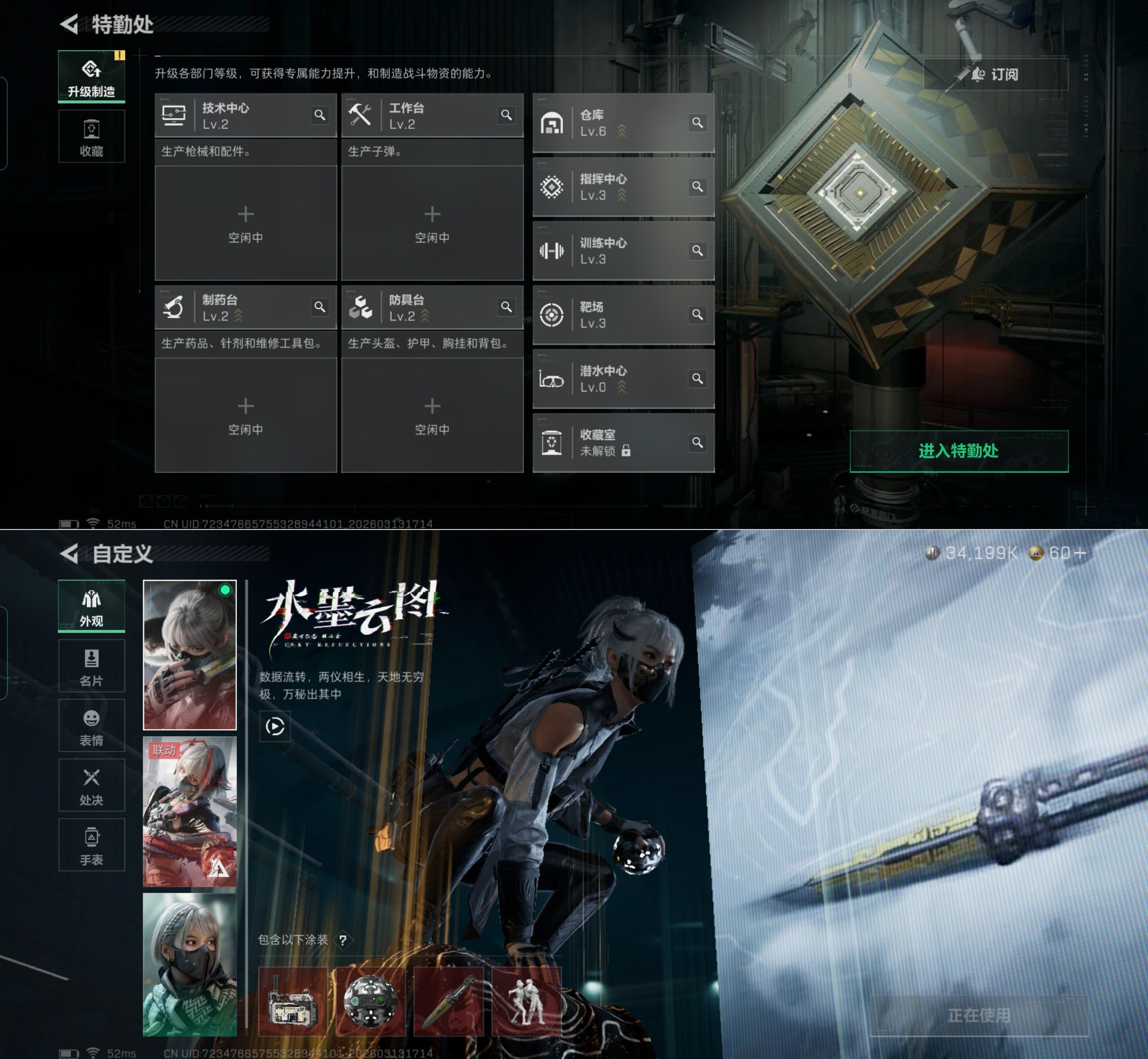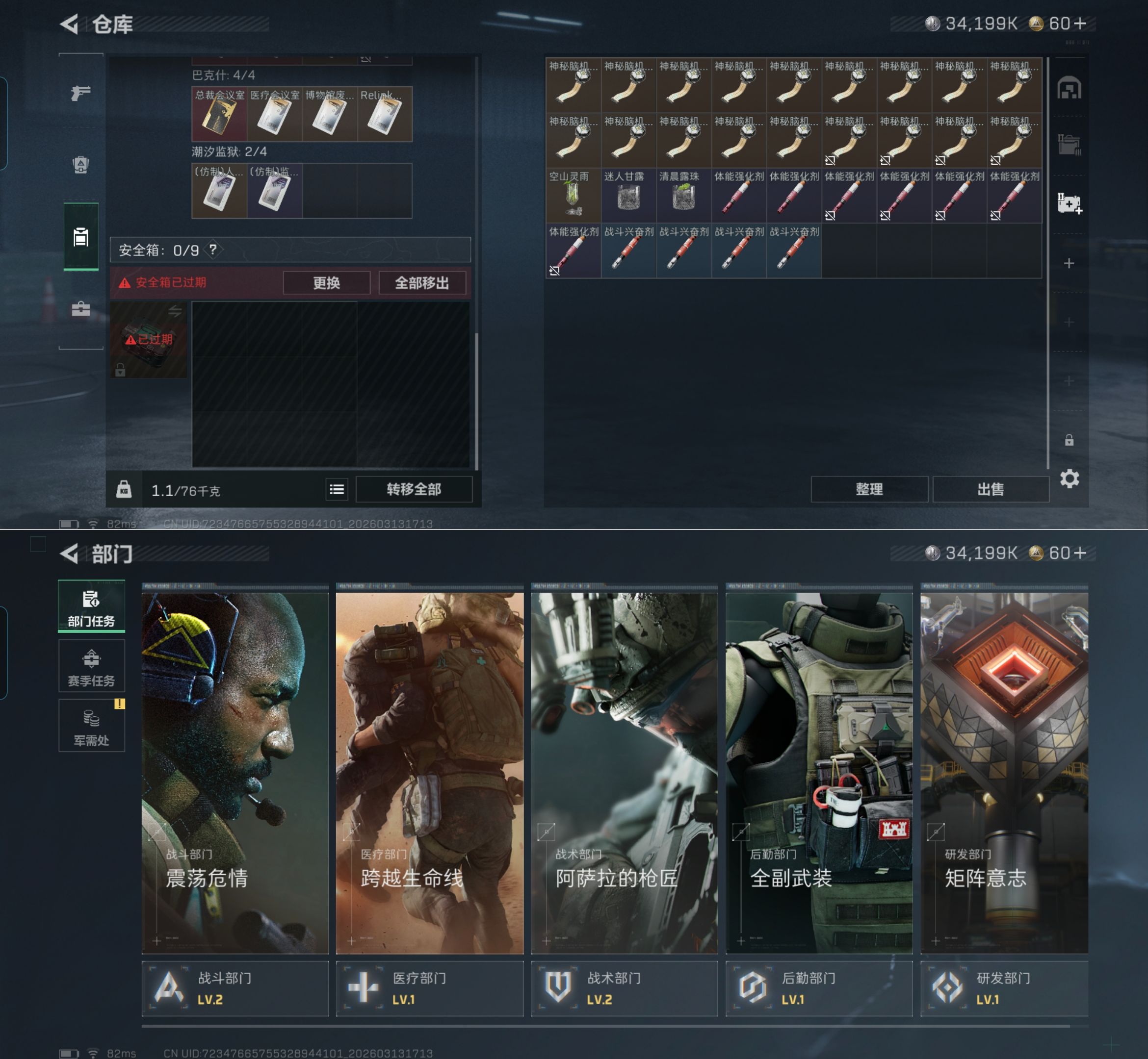 【总资产(M)】62.52【哈夫币】34199k【行动等级】36
