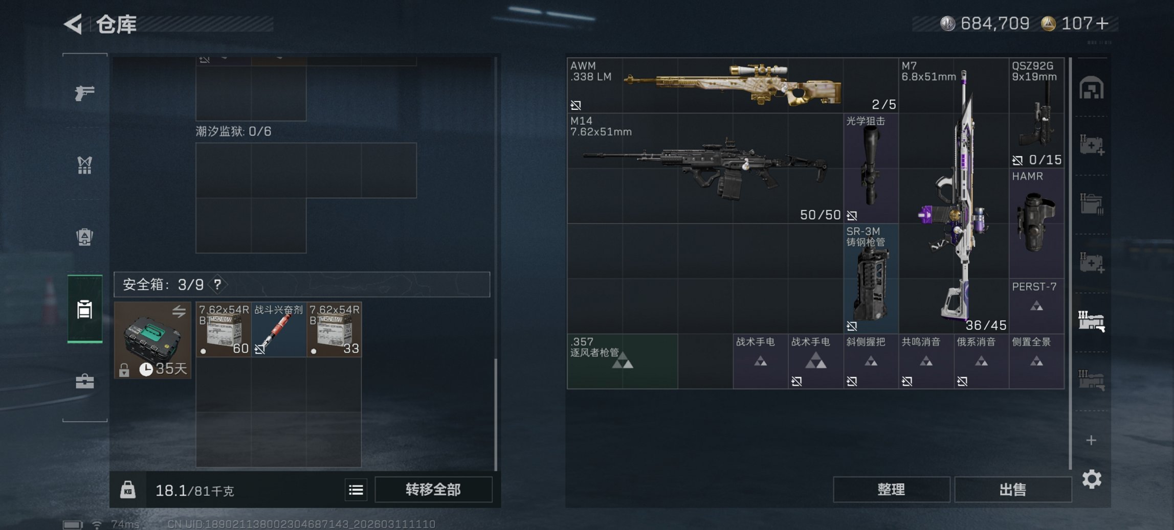 暗星 S8赛季顶级安全箱 5颗AW子弹 总资产93M,哈夫币684K