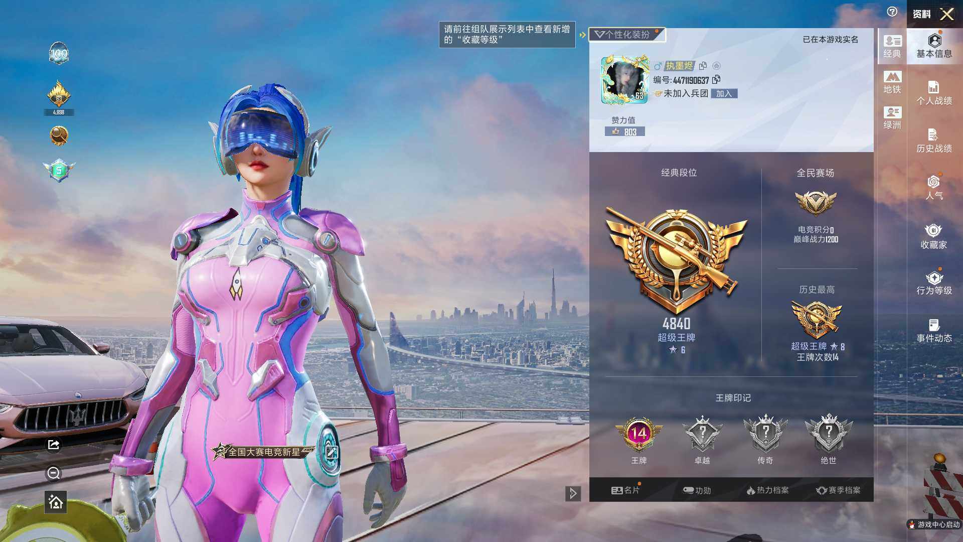 5粉装-9特效枪-4载具-5粉色飞行器-54165热力值-14王牌印记-103套装-176枪皮