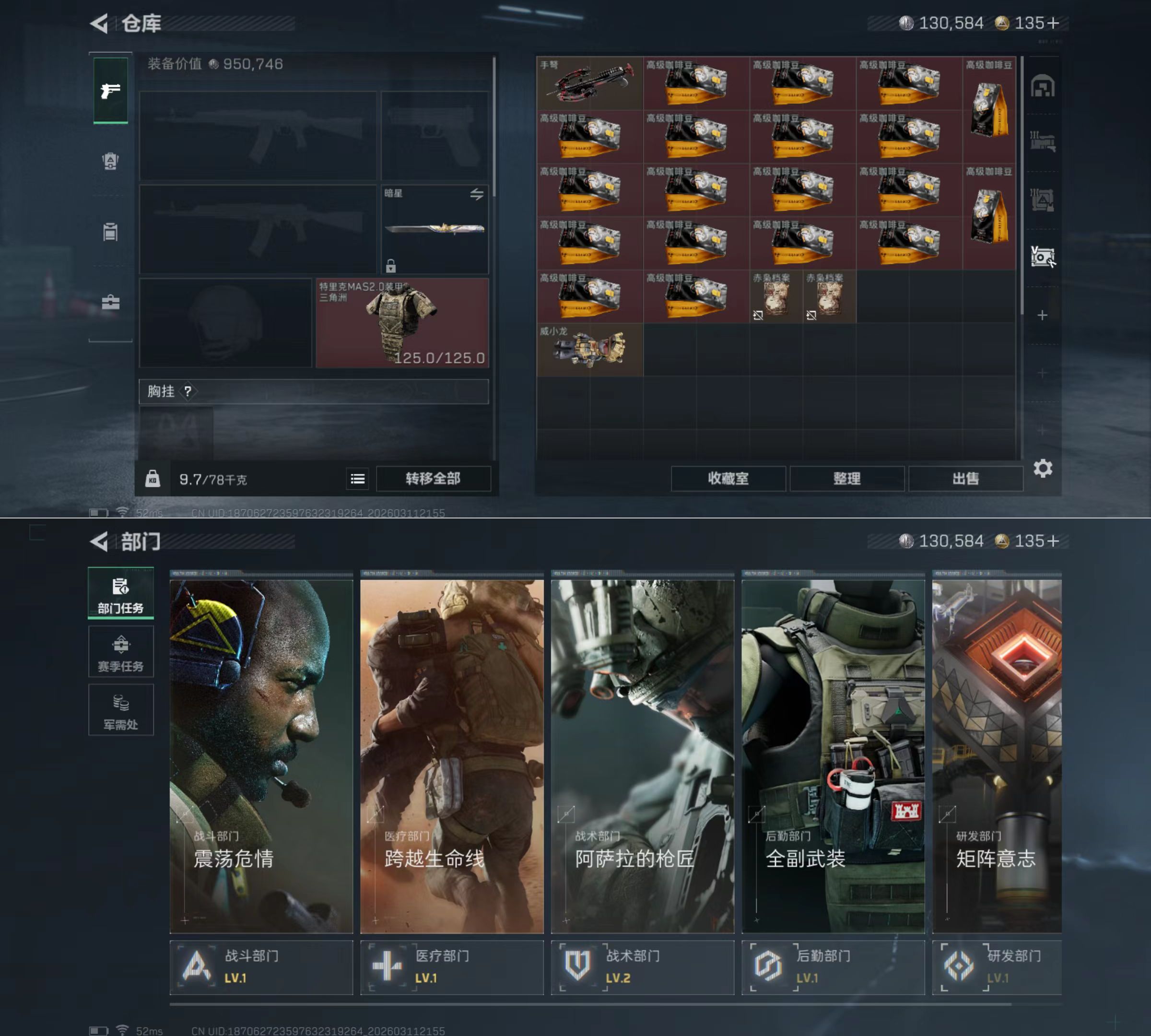 总价值52.8M-哈夫币130.58-烽火地带等级