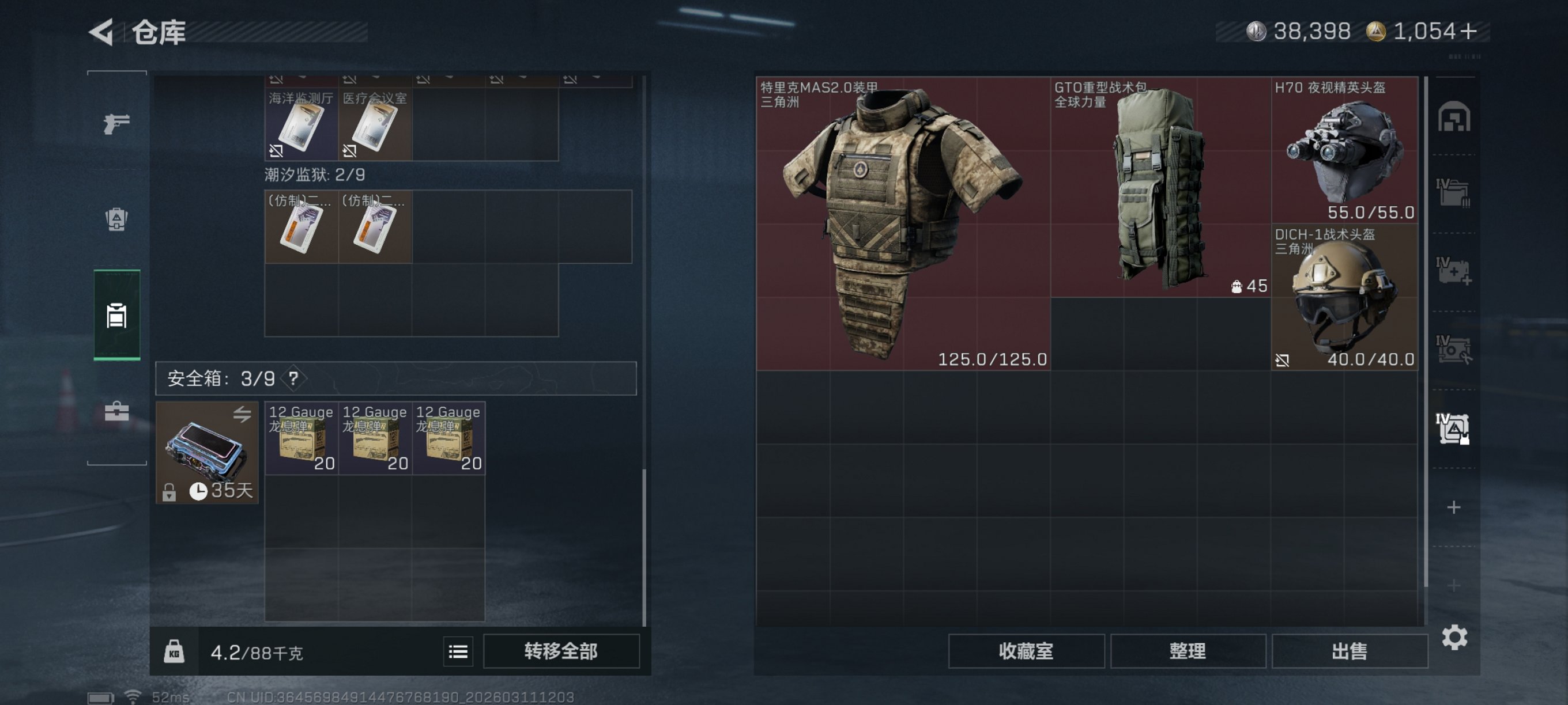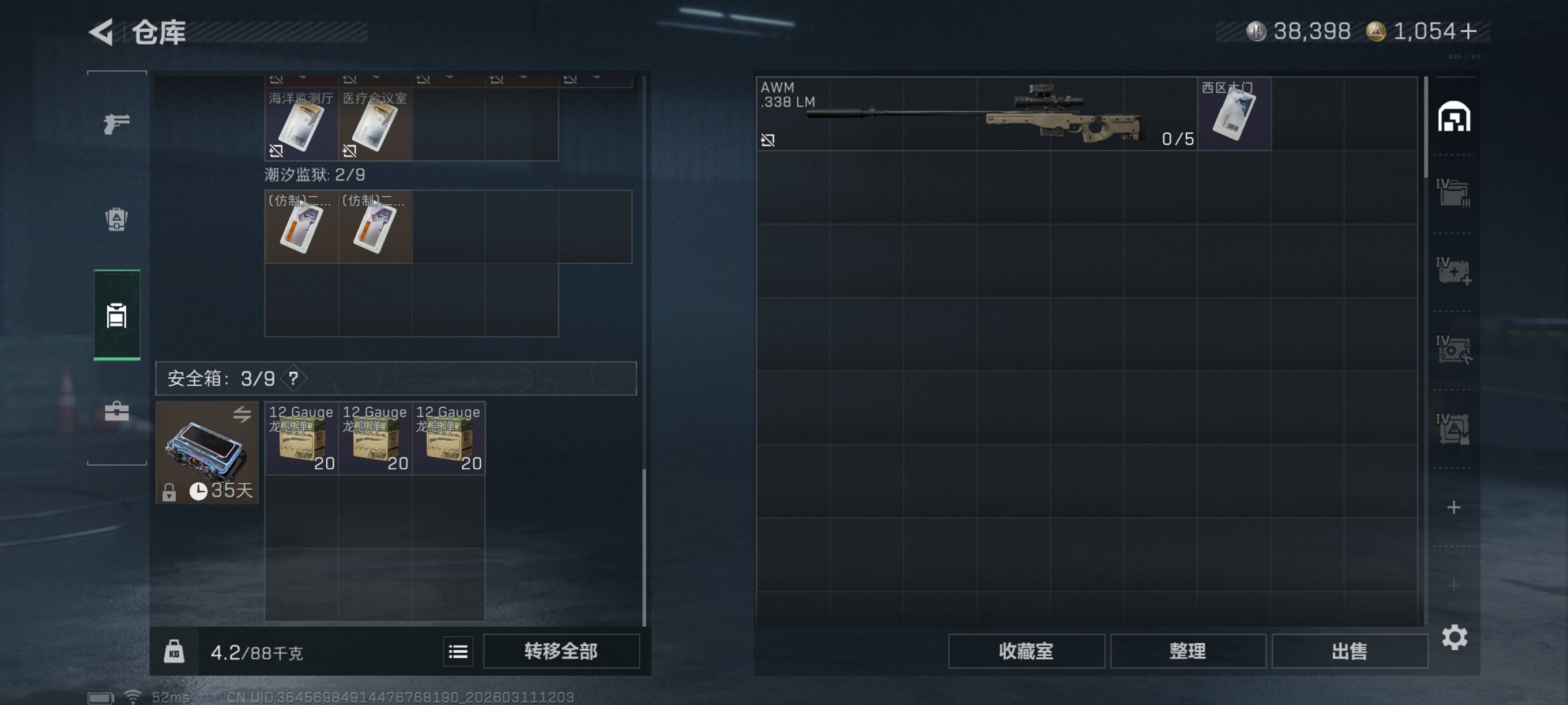 【1054三角币 4级处刑者 S8赛季顶级安全箱 110颗AW子弹 安全箱皮肤零号玩家 总资产150M,哈夫币38K,行动等级:60,近战数量:1,仓库等级:8级,训练中心等级:7级,靶场等级:7级,干员皮肤:1,枪皮:100 秒换绑不用等】