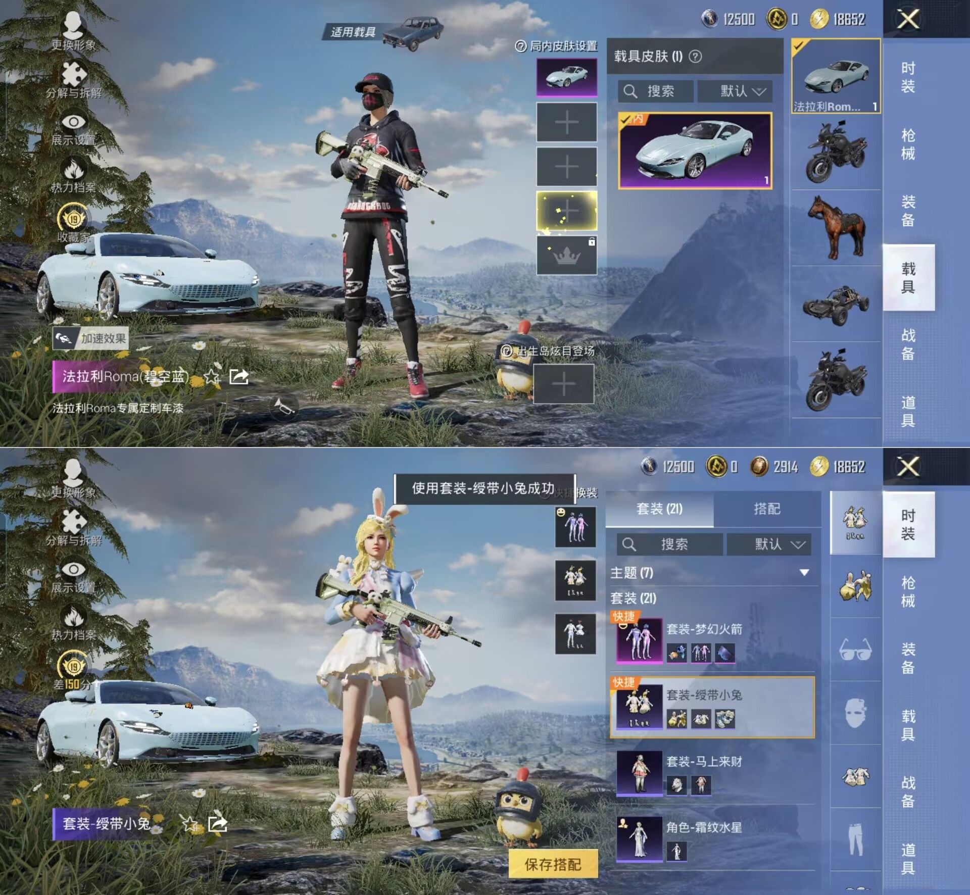 M1046883【身法号1载具-1粉装-6特效枪梦幻火箭】苹果手V-1载具-1粉装-6特效枪-套装21-枪皮29-1王牌印记-王牌12星【载具】法拉利Roma(碧空蓝)【粉装】梦幻火箭【特效枪】ACE32-萌骑漫游 14-福马献瑞【稀有】MG3-第五大道 角色-霜纹水星【头饰】梦幻火箭发饰【眼镜】梦幻火箭眼镜【降落伞】梦幻火箭降落伞 快乐主宰降落伞