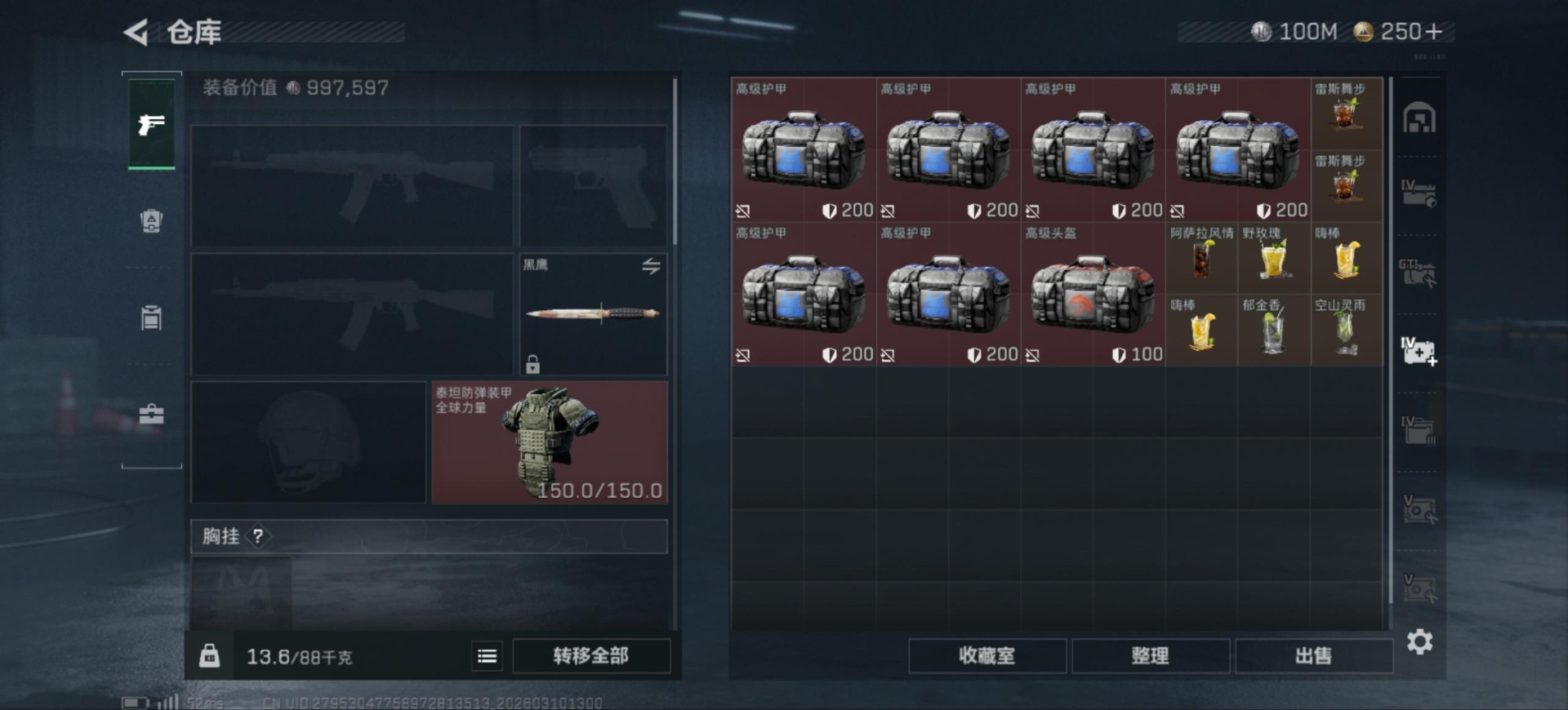 [17583361]总资产:364.8M 1干员外观 1近战传说 17传说枪械 哈夫币:100K 可二次 可修改实名 无违规