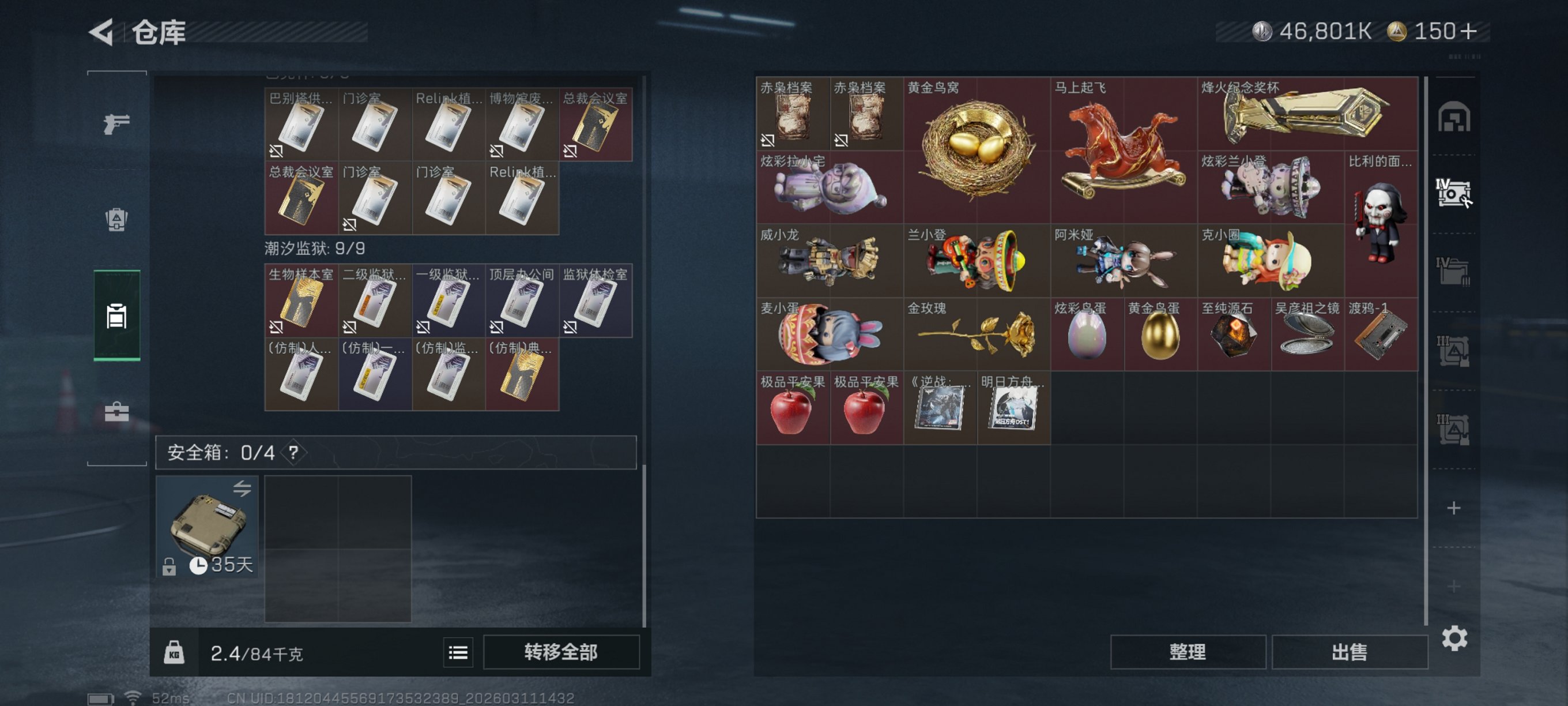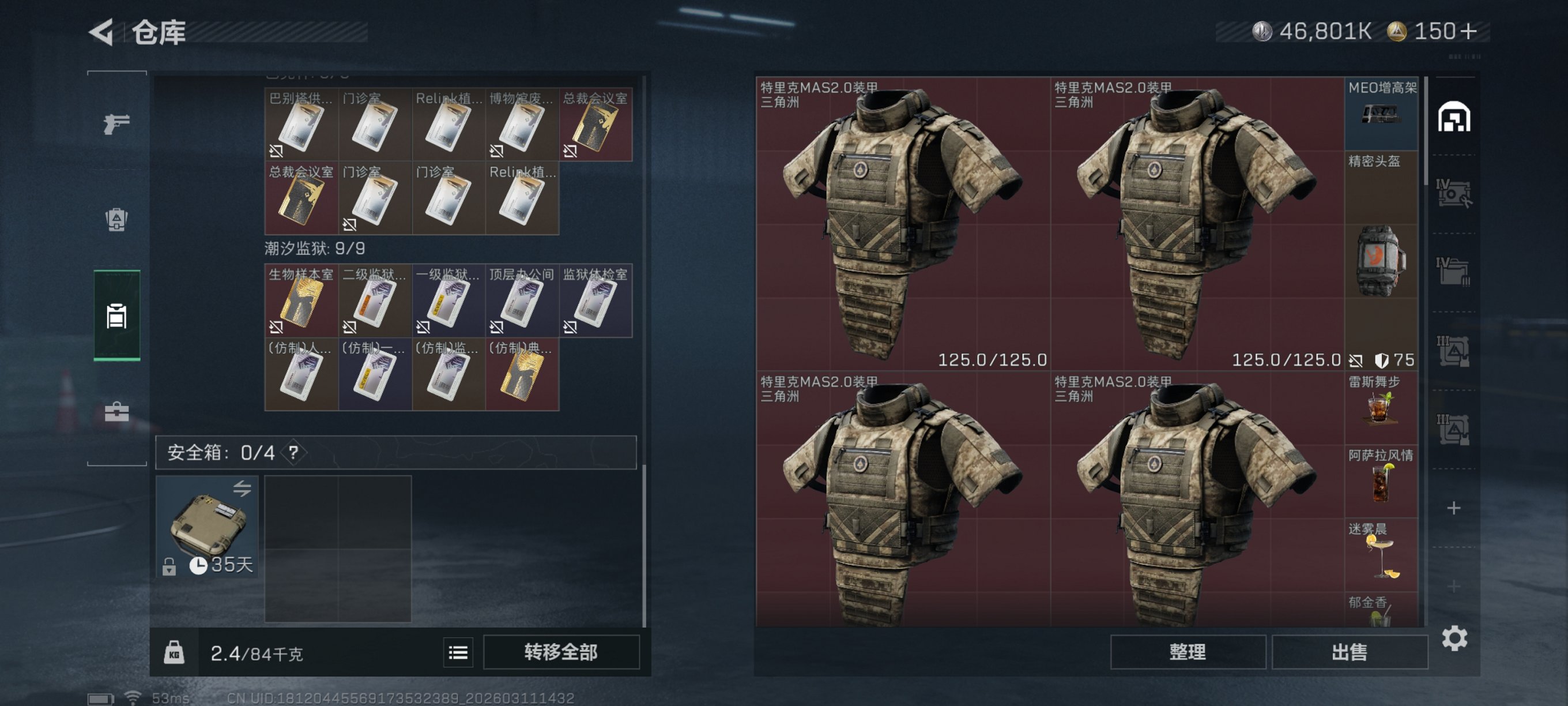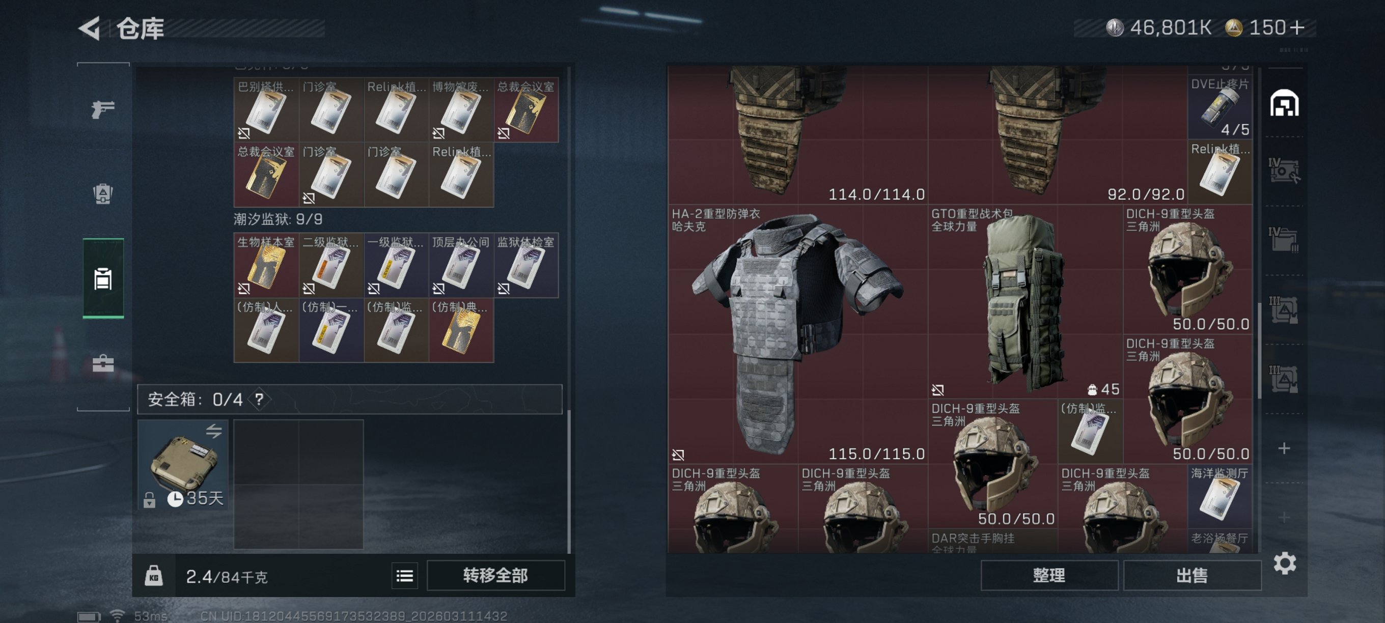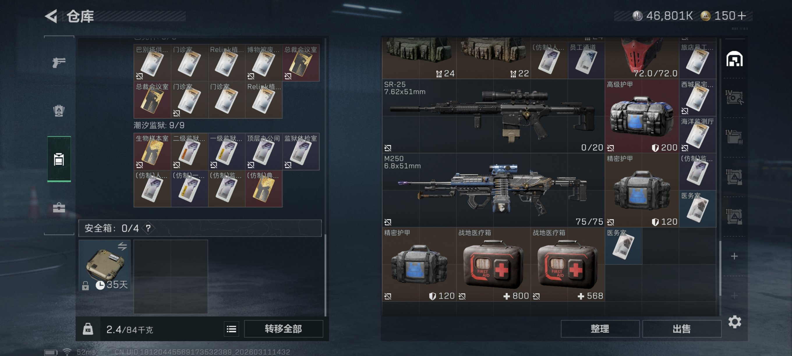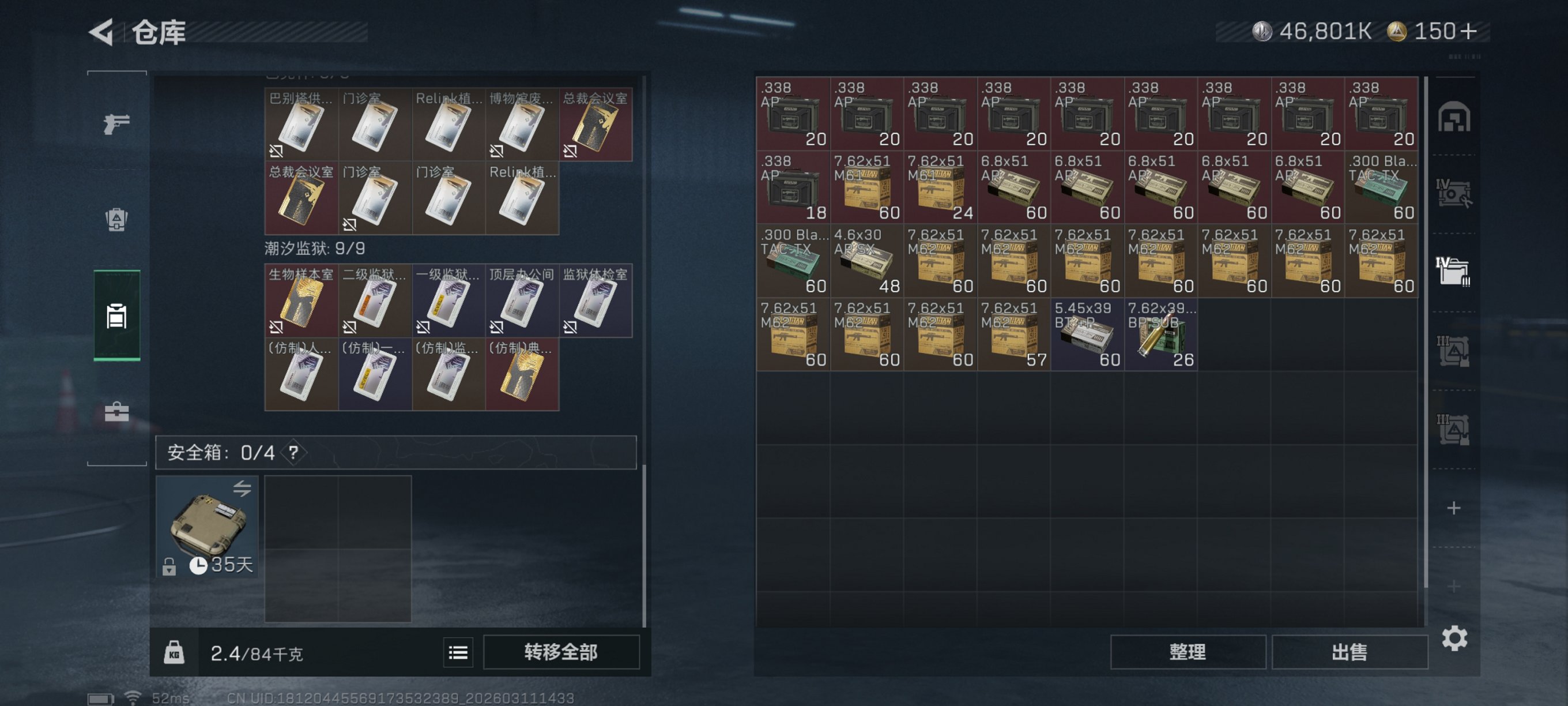 【红皮红狼 198颗AW子弹 总资产174M,哈夫币46,801K,行动等级: