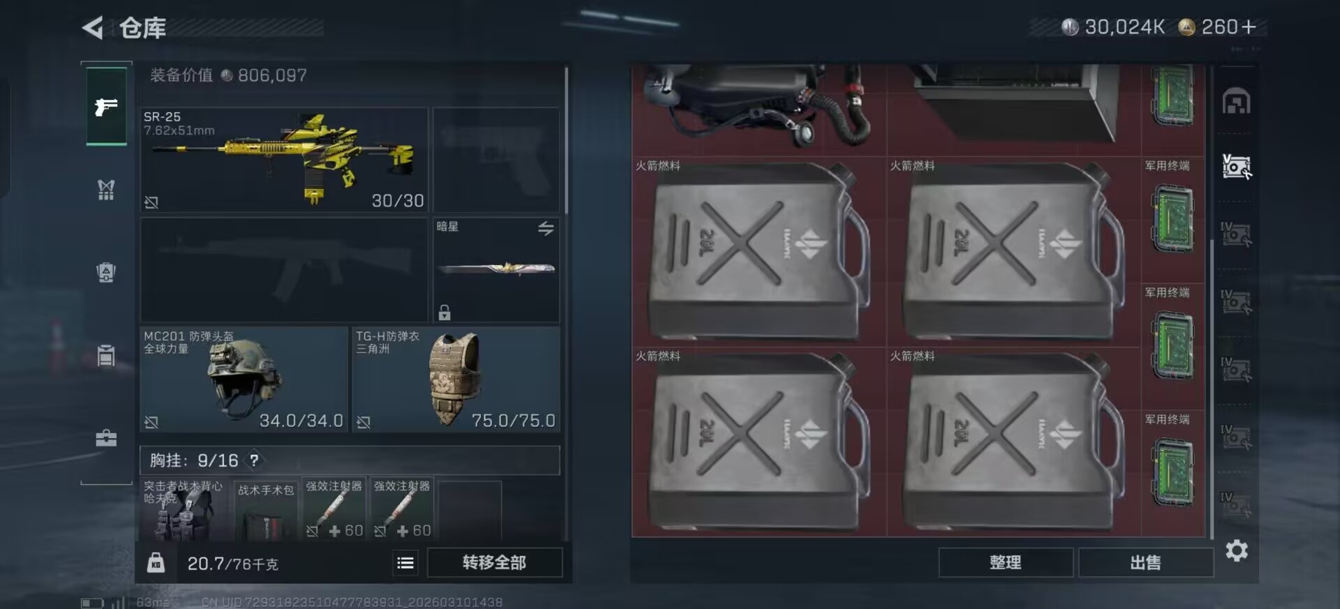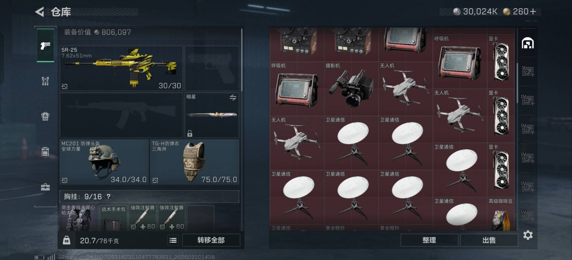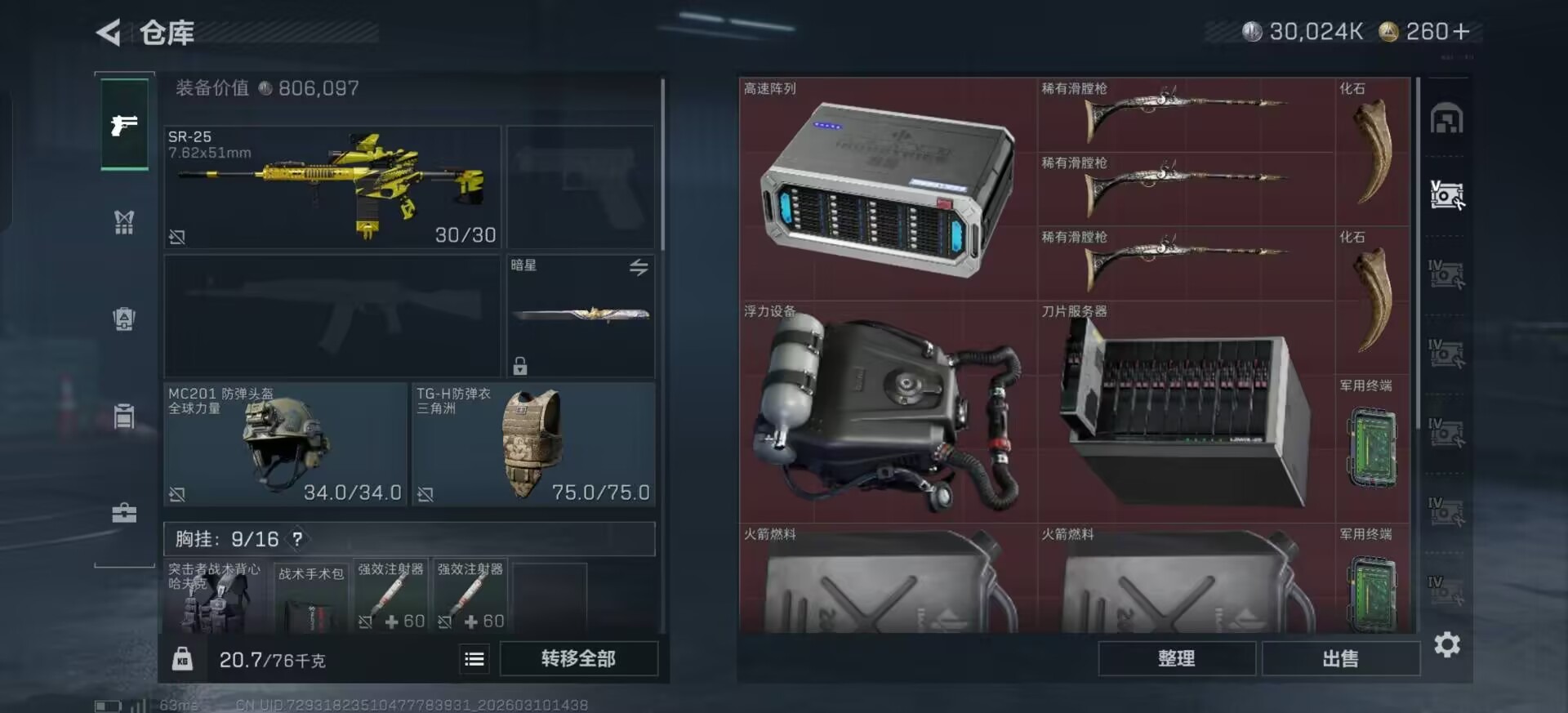 总资产:205.1M 1干员外观 2近战传说 10传说枪械 哈夫币:30.024K