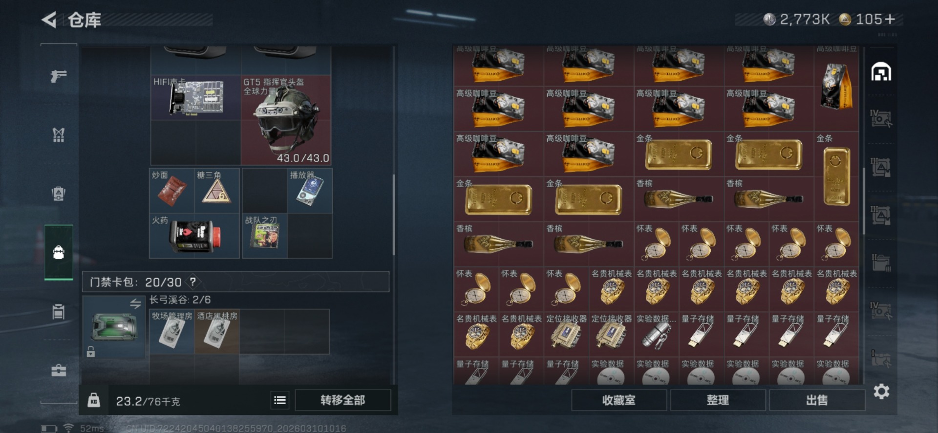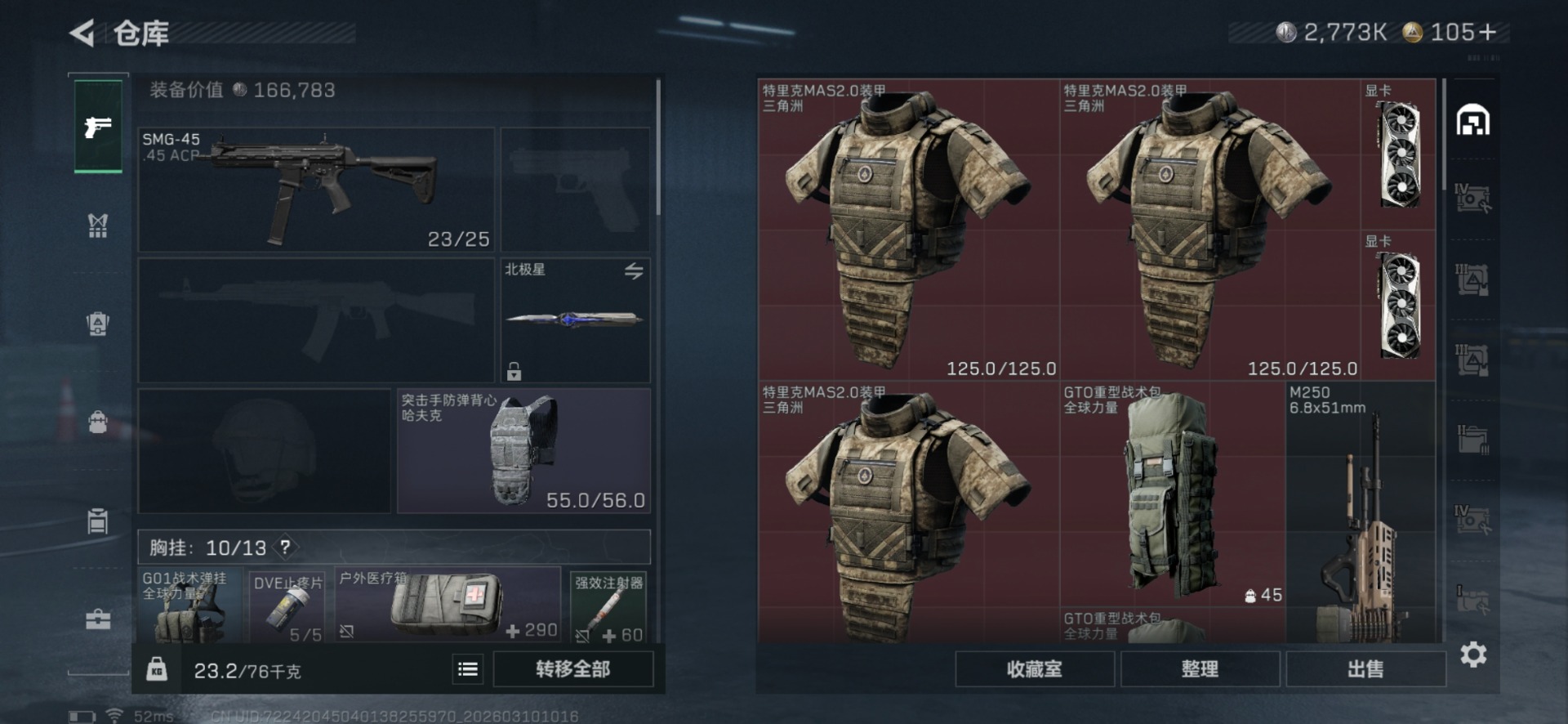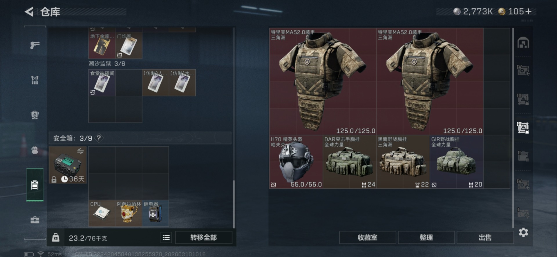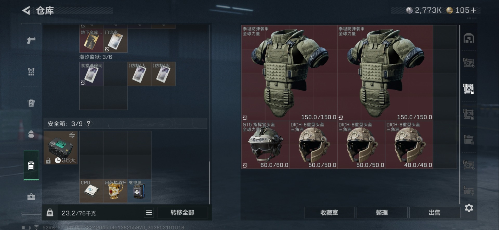 [17578368]总资产:246.6M 7干员外观 2近战传说 34传说枪械 哈夫币:2.773K 顶级安全箱(3×3)4.11号到期 不可修改实名