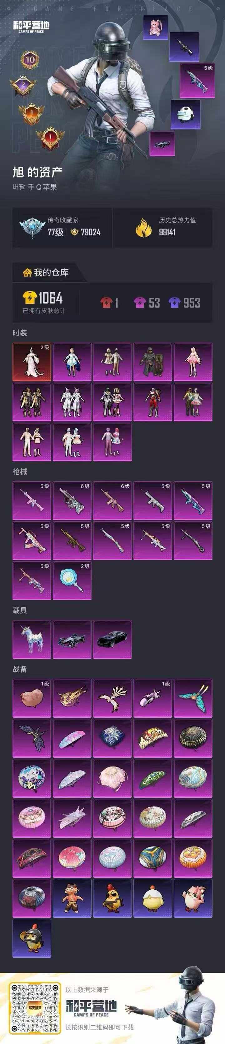 ]苹果 手Q-1神装-12粉装-12特效枪-3载具-6粉色飞行