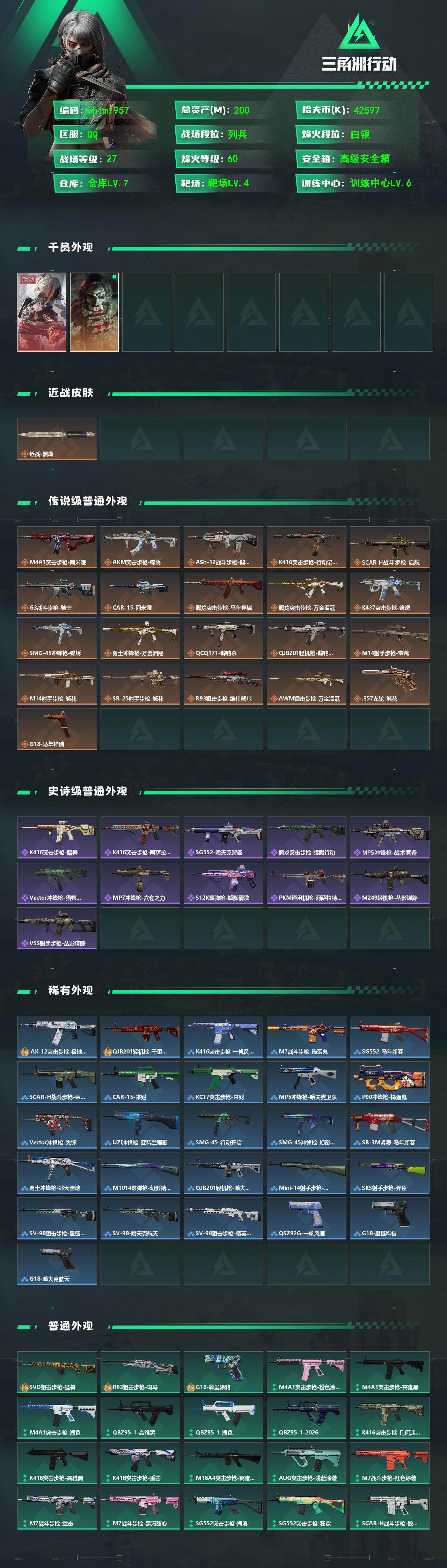 200m总资产-42597k哈伏币-60烽火等级-白银-27战场等级-列兵