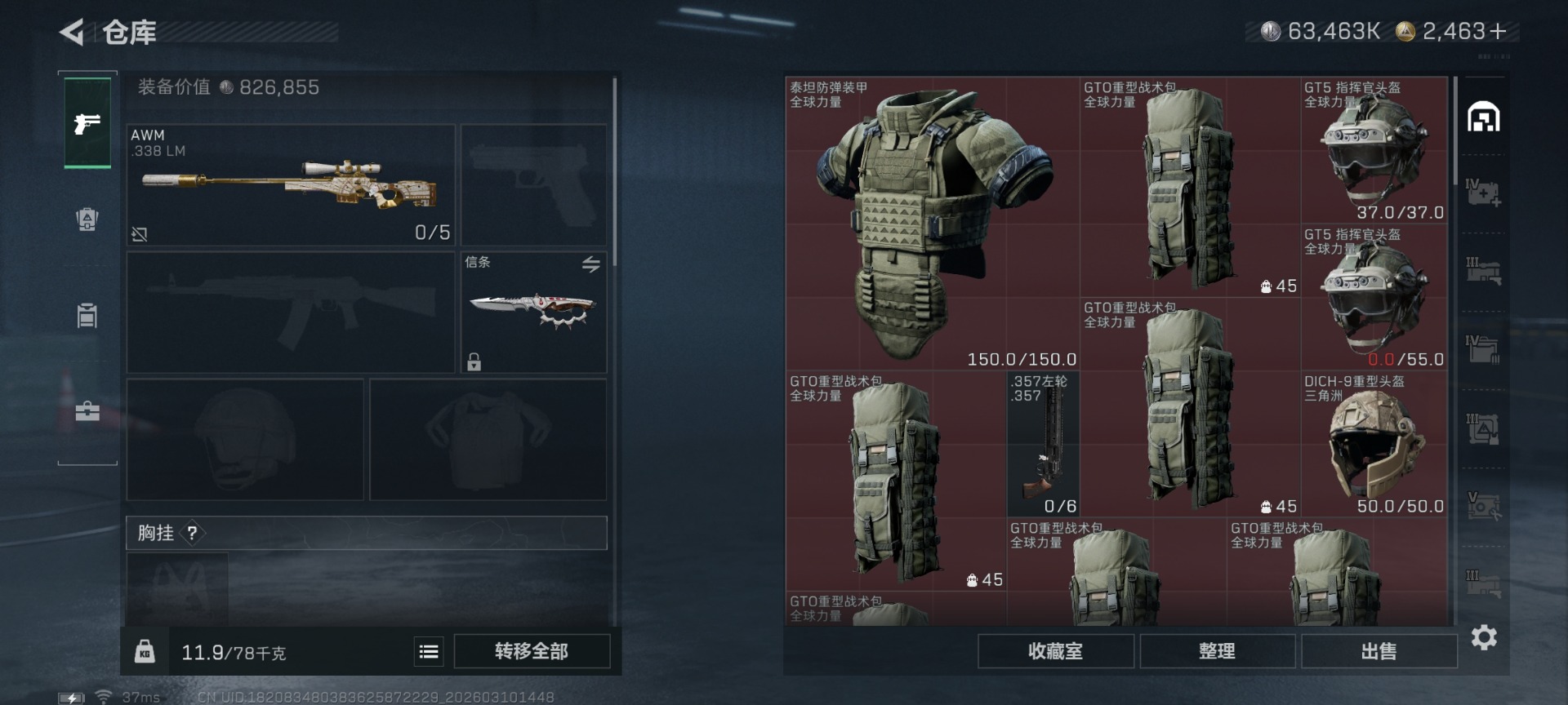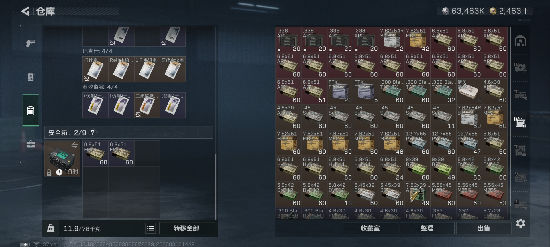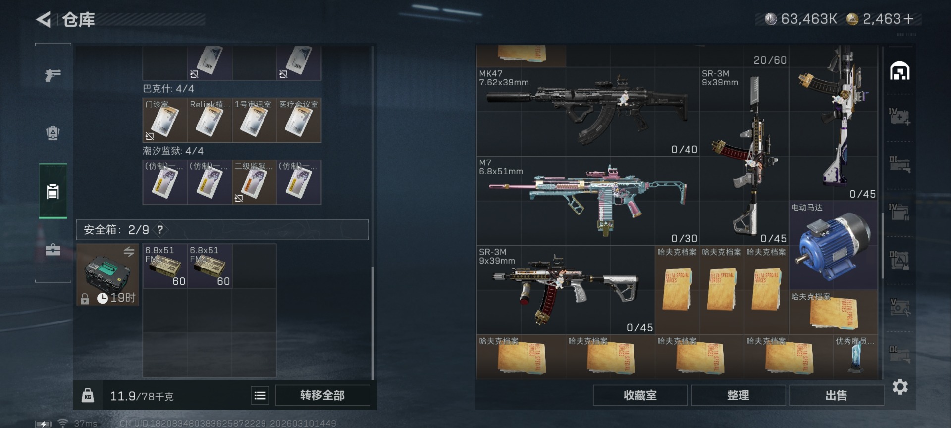 总资产:267.2M 1干员外观 1近战传说 29传说枪械 哈夫币:63.463K