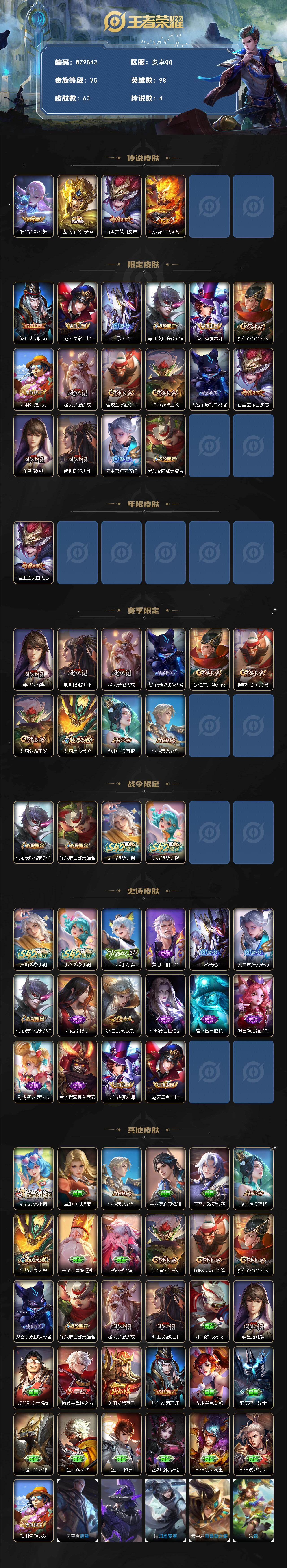 安卓Q-V5-最强王者段位-98英雄-63皮肤-4传说-15史诗【英雄全皮】