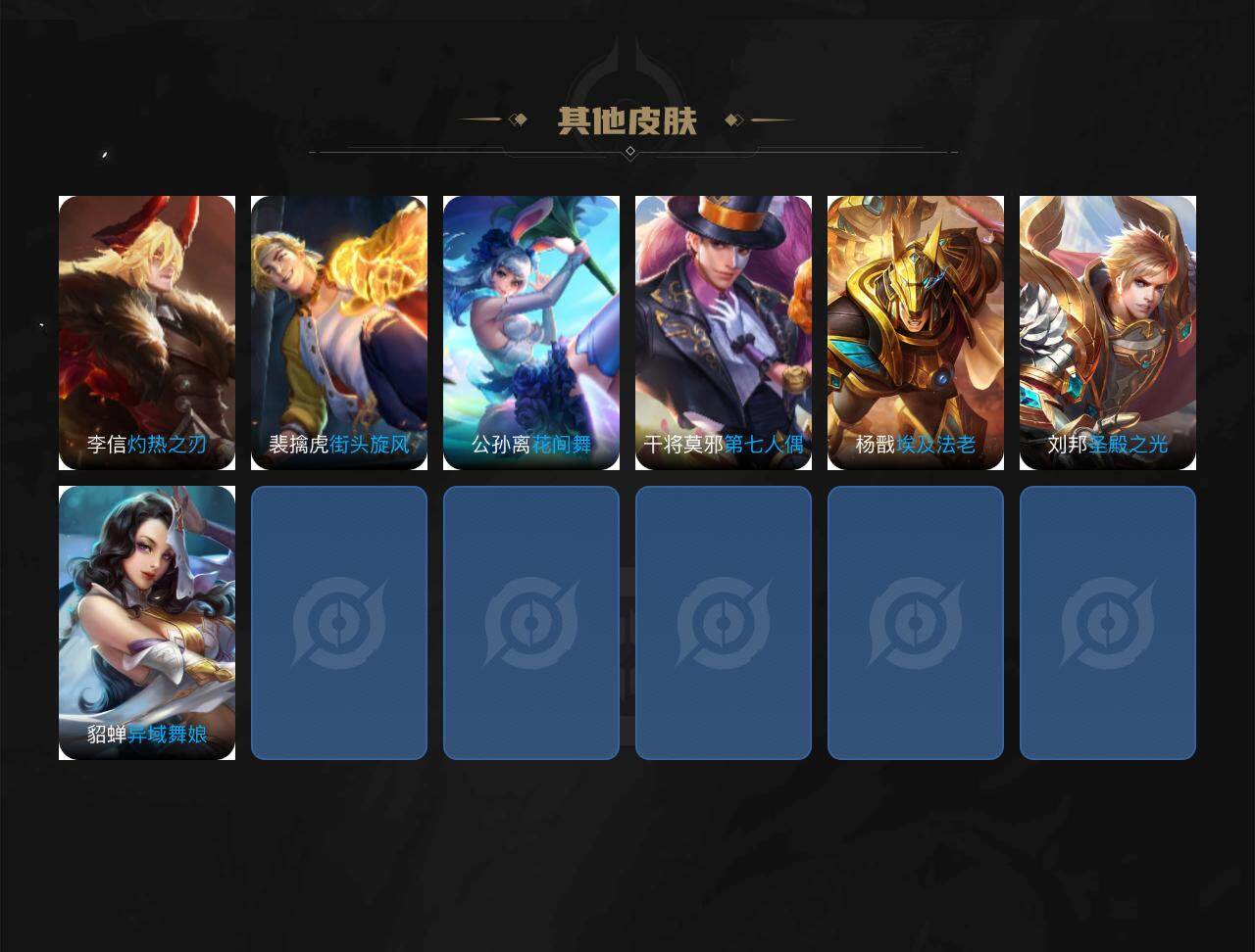 【传说皮肤】:貂蝉猫影幻舞,达摩黄金狮子座,百里玄策白虎志,孙悟空地狱火
