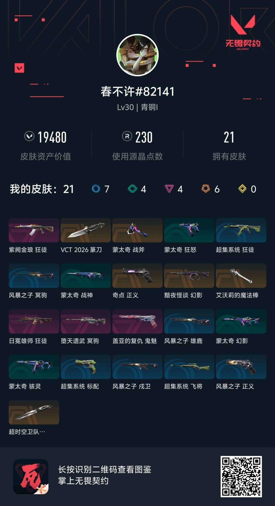 ]6橙皮 4紫皮 21皮肤 10英雄 31卡面 230已用源晶 青