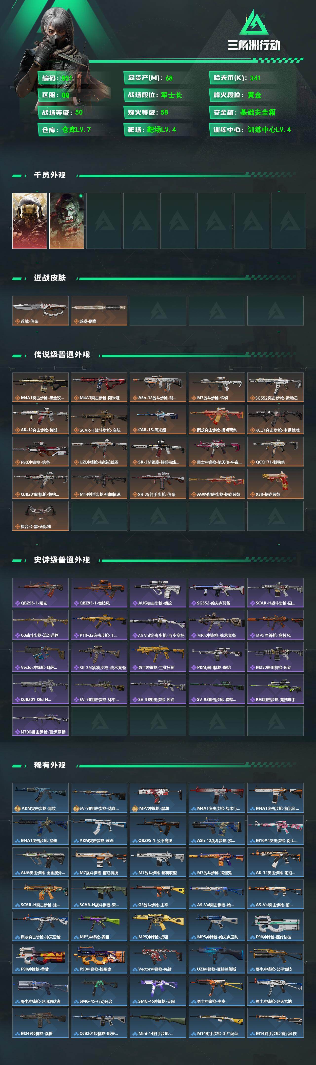 68m总资产-341k哈伏币-58烽火等级-黄金-50战场等级-军士长【干员