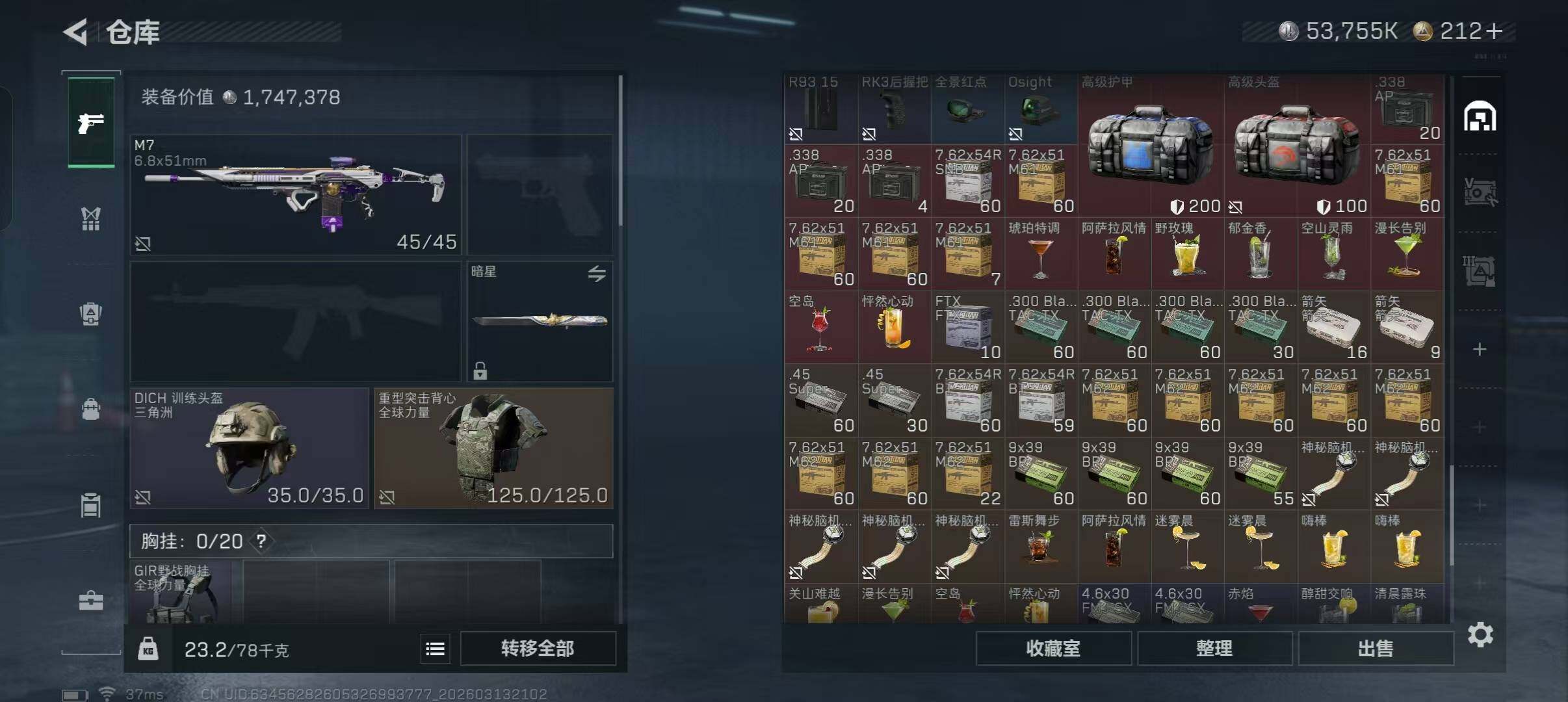 180m总资产-53755k哈伏币-60烽火等级-黑鹰-26战场等级-军士长