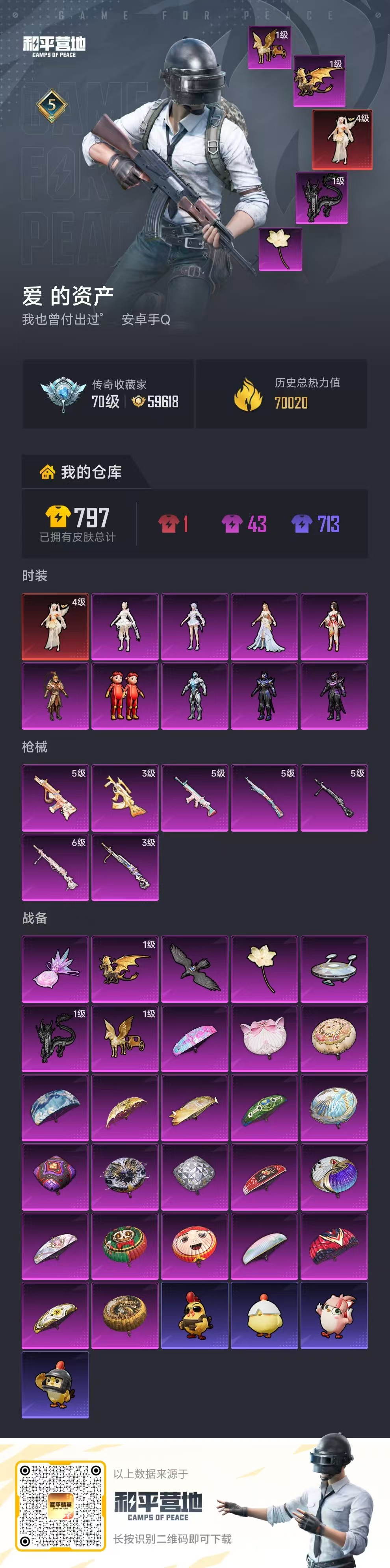 安卓手Q-5王牌印记-1红装-9粉装-7特效枪-70020热力值