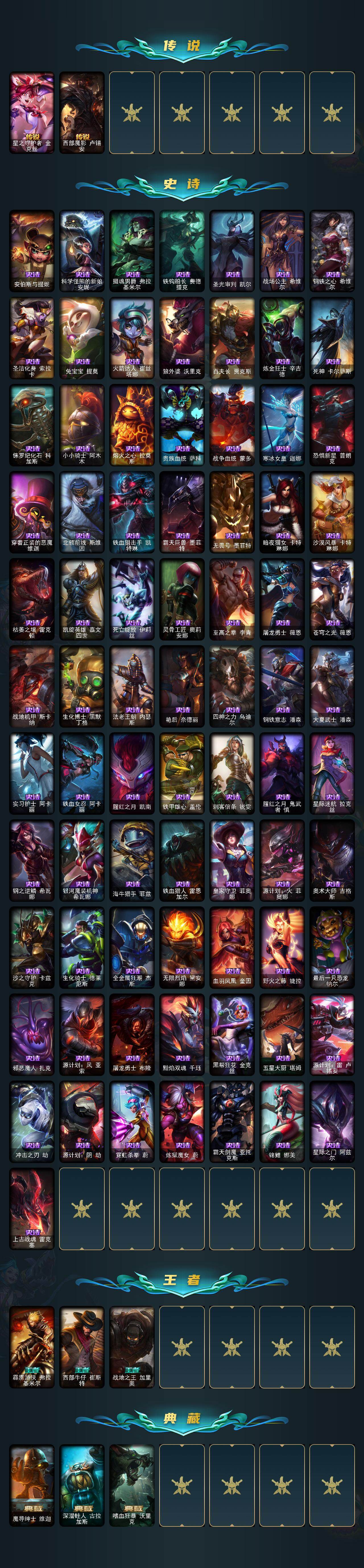 166英雄/260皮肤/2终极/3神话/33限定/2臻彩/
