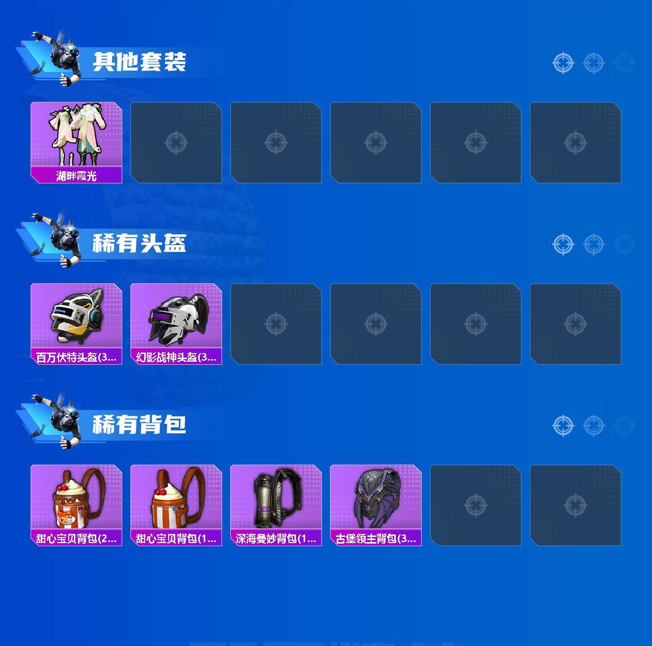 188套装/枪械8/装备339/载具5/战备202/王牌印记14