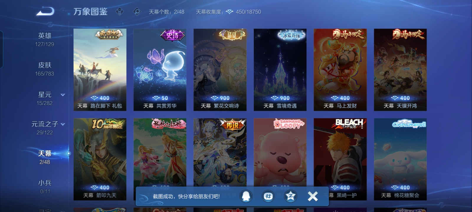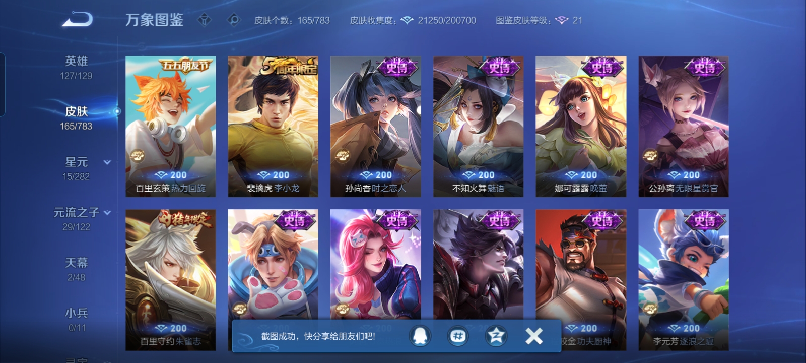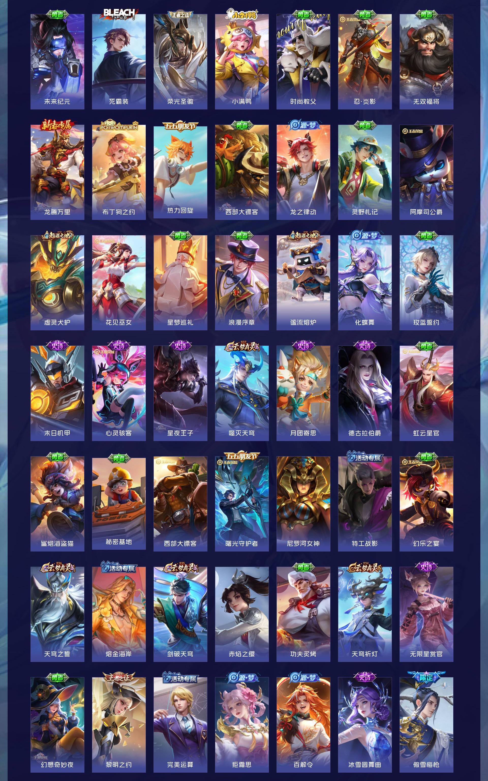 V6 皮肤165 英雄127 无双王者 传说5 其他皮肤167