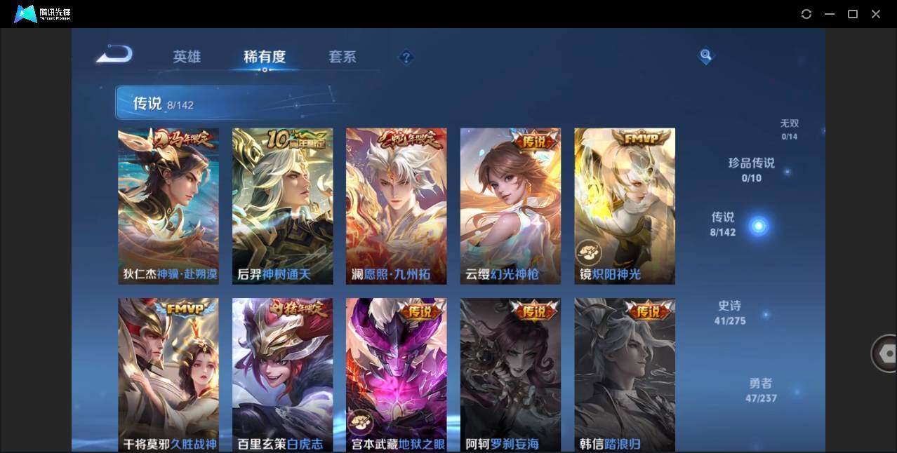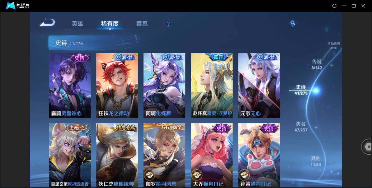 可二次-贵6-99英雄--107皮肤-8传说-41史诗-39限定-2专属播报-1星元-5按键-204幸运值