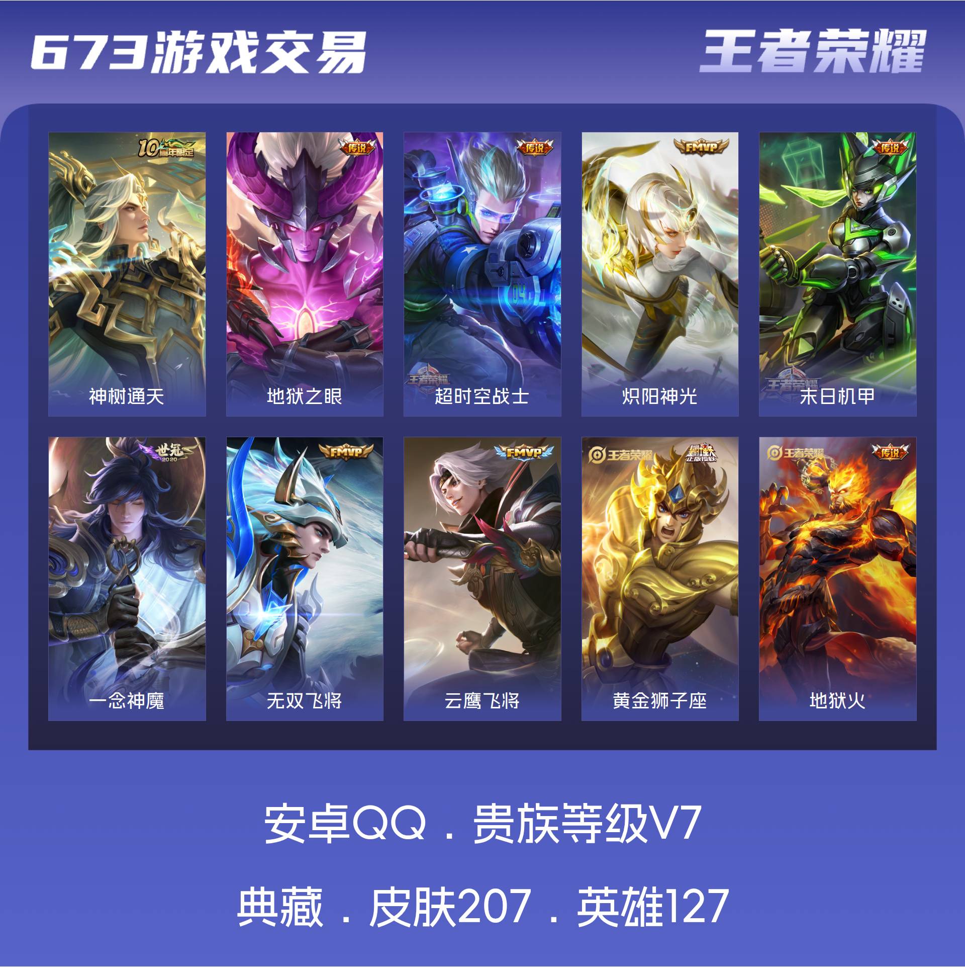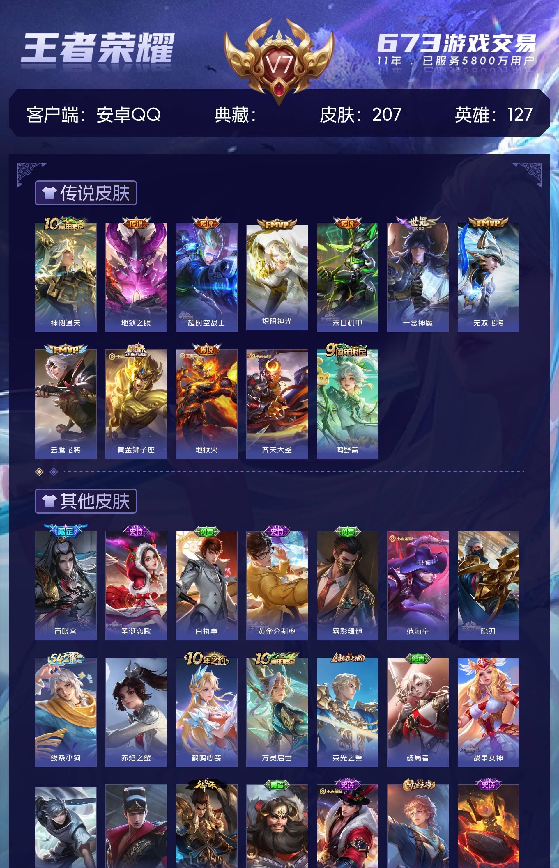 V7 皮肤207 英雄127 至尊星耀 星传说2 传说12 其他皮肤201