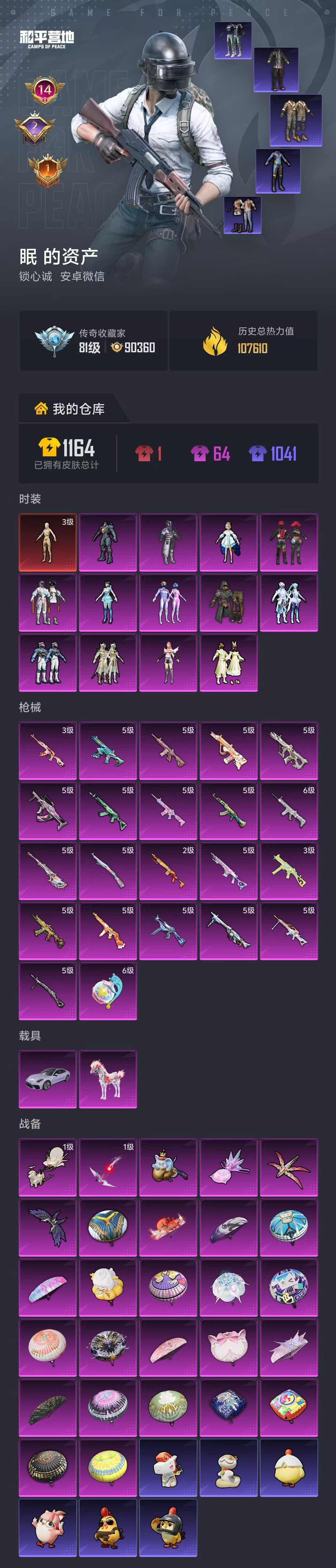 安卓微信-14王牌印记-1红装-13粉装-22特效枪-2载具-热