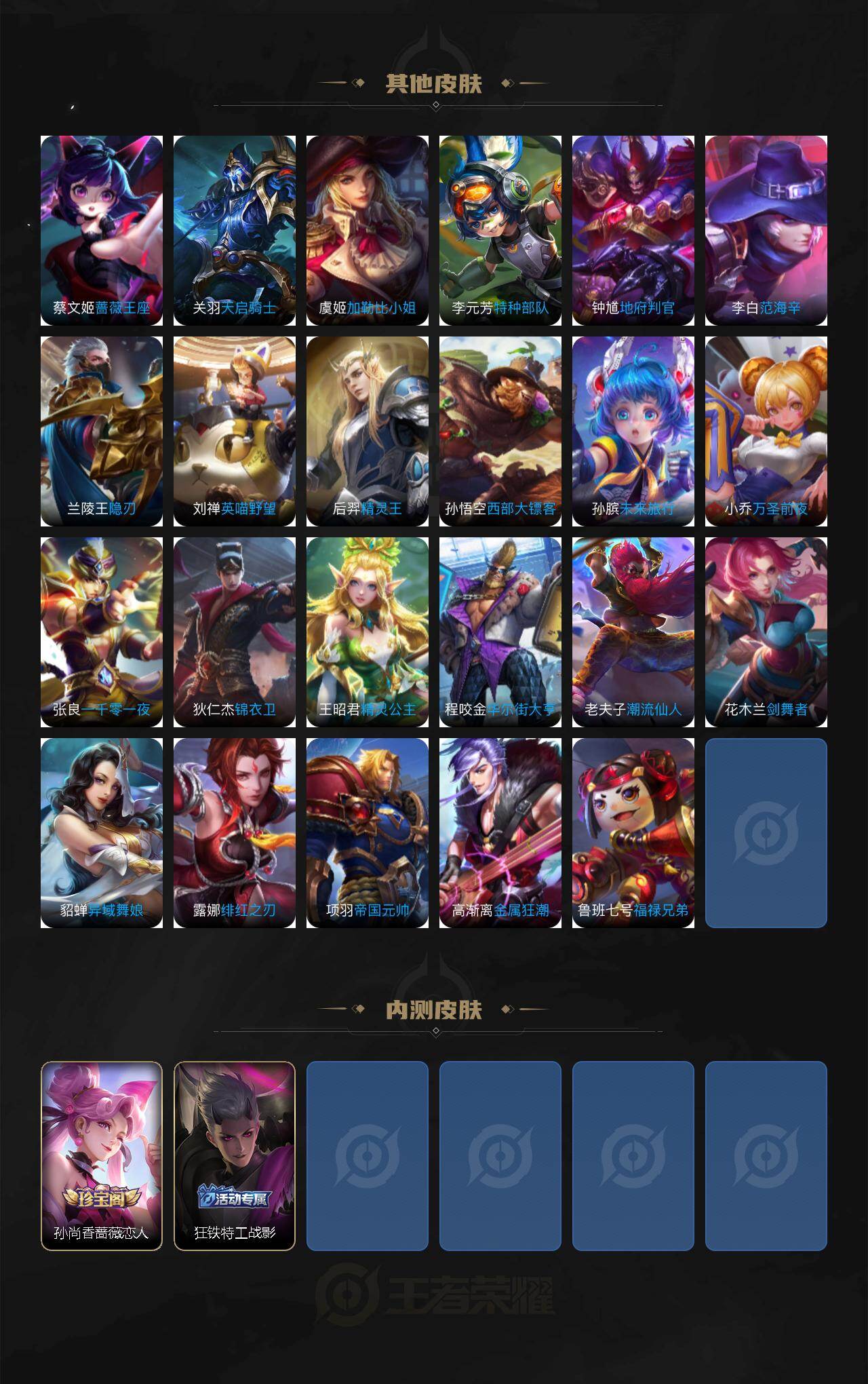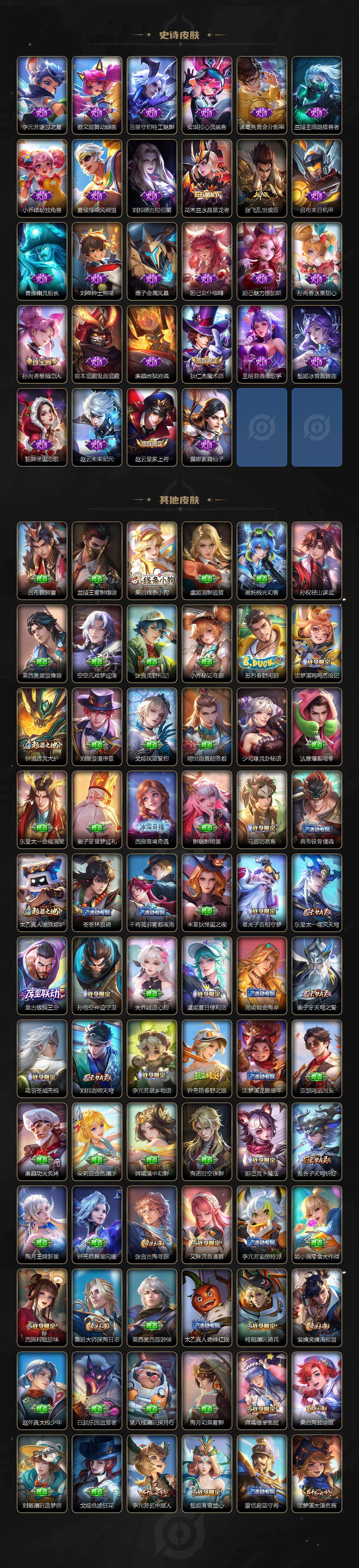【英雄全皮】:孙权全皮,敖隐全皮,鲁班大师全皮,戈娅全皮,空空儿全皮,影全皮