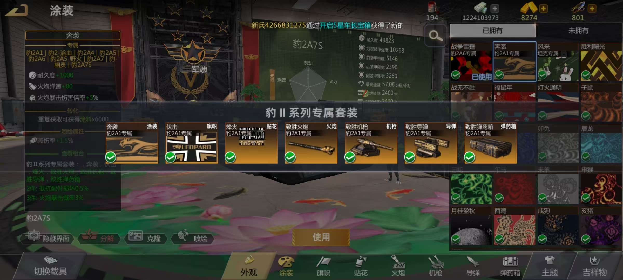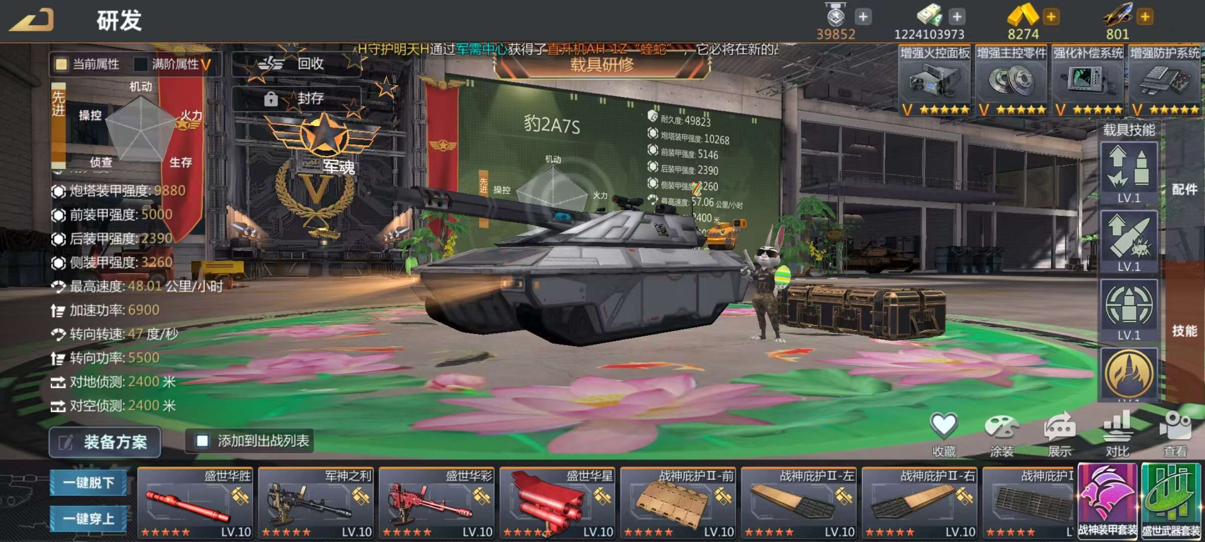 3860安卓华为-手电通用-凯奶隆朱古巴那兔战役-豹2A7S-盛世套-军神套-锻造刷好属性-部件全红