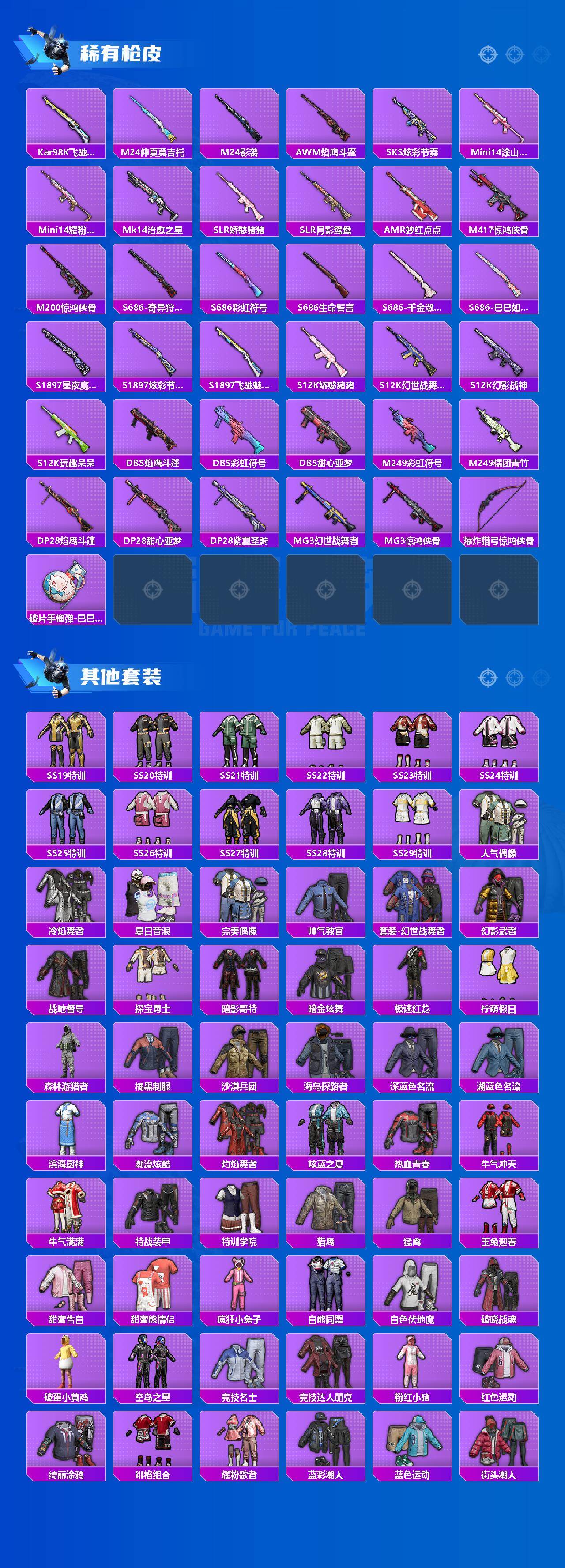 【粉色枪皮等级】:AKM-绿萝繁花(五级),SCAR-L-锦绣绵绵(五级),M416-电玩时刻(五级),GROZA-镜光银凌(五级),AUG-暖羊咩