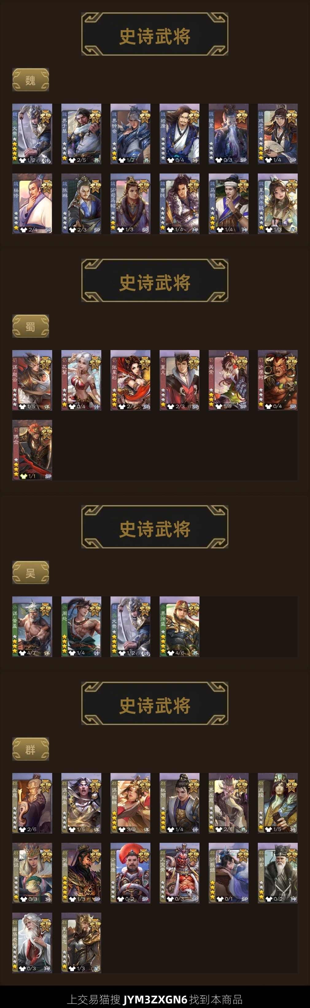 史诗武将数量: