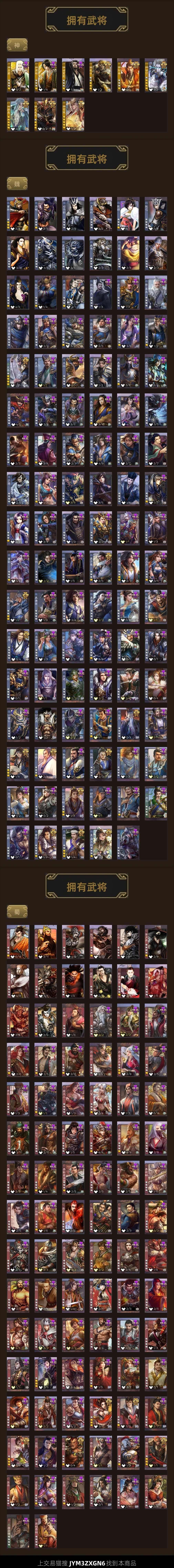 双形态神郭嘉神荀彧刘焉神甘宁双形态杜预谋黄盖谋貂蝉文鸯马钧南华老仙神太史慈周处傅佥SP甄姬界徐盛