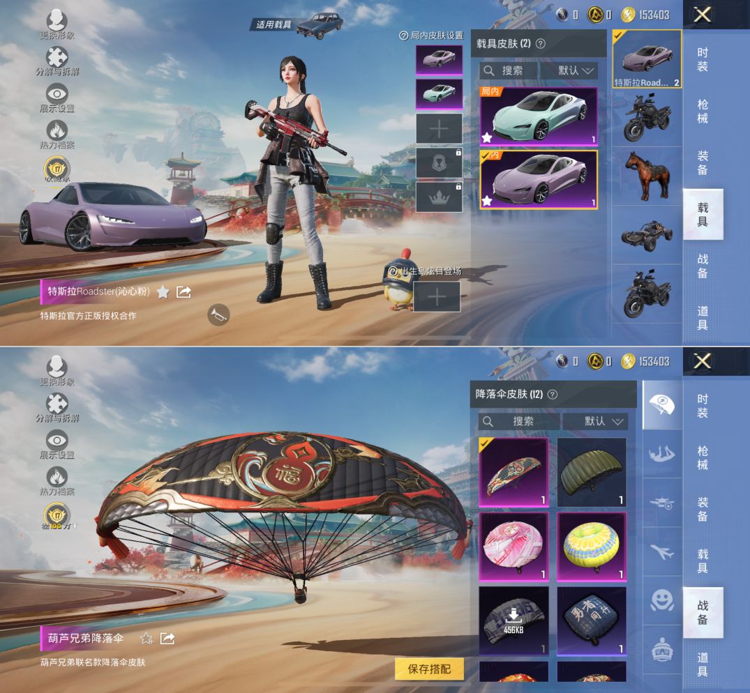 【可二次】苹果V区-2载具-26套装-28枪皮-王牌1-【载具】特斯拉Roadster(水滴蓝) 特斯拉Roadster(沁心粉)【套装】狙击之神 黄色名流 牛气满满【降落伞】葫芦兄弟降落伞