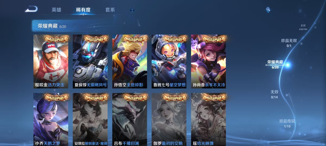 【V10 438皮肤7水晶6星元1珍品34传说2天幕可秒换