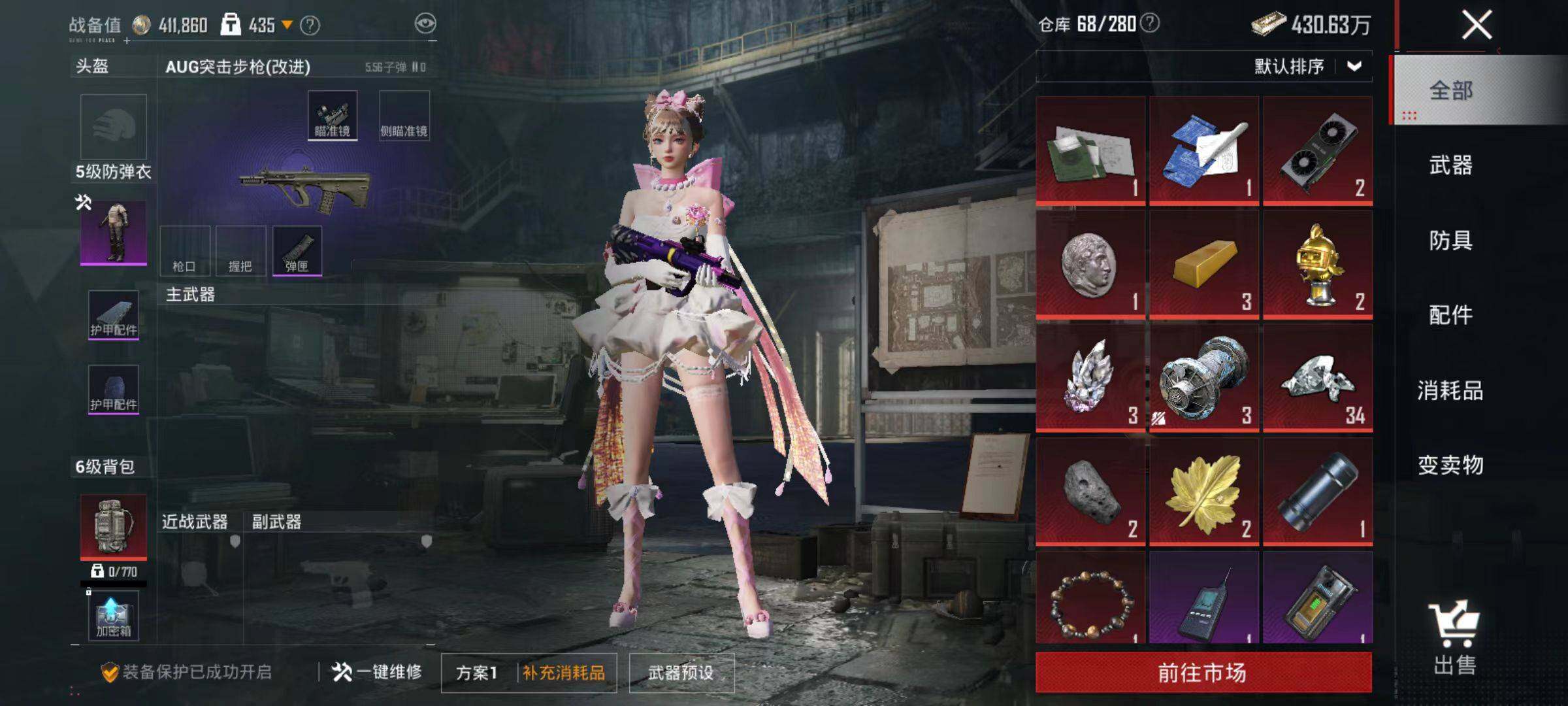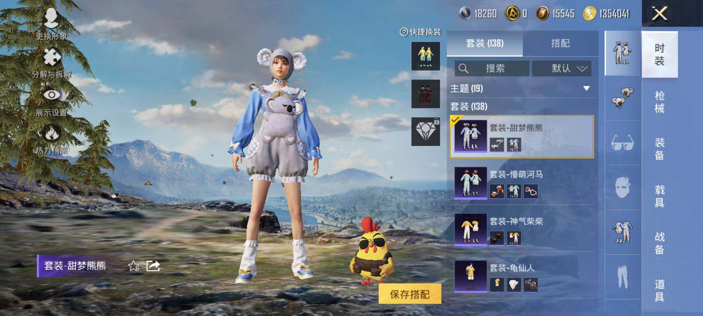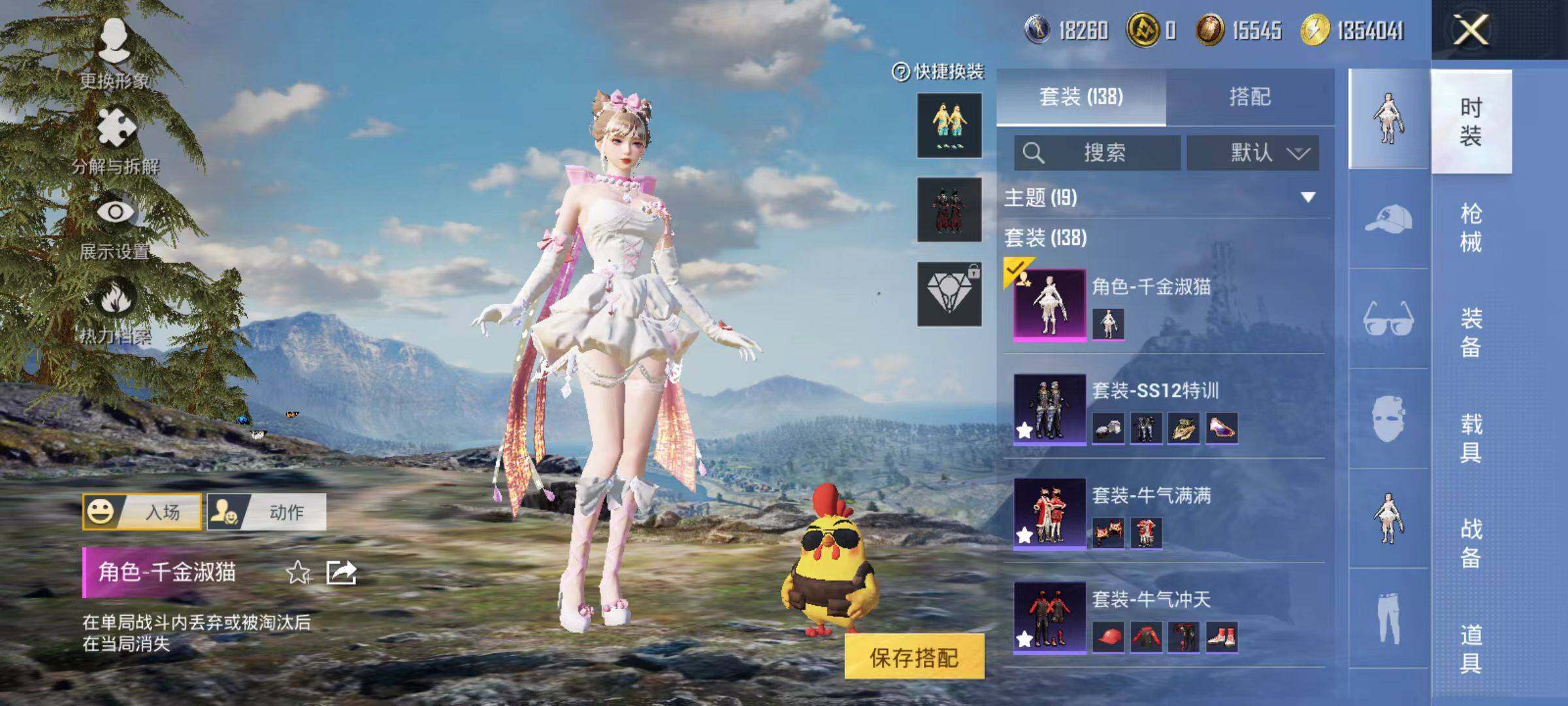 138套装/枪械2/装备189/战备118/王牌印记13/热力值45641/五级Kar98K-巳巳如意/五级DP-28-豹影疾电/奇异狩猎者/军刀雅典娜/套装-龟仙人/角色-千金淑猫/Kar98K-巳巳如意/DP-28-豹影疾电/环太平洋降落伞/千面幻镜降落伞/闲梦青缨降落伞/蜜语绒猫降落伞/创世·救赎降落伞/炫彩糖果降落伞/龟仙人/巳巳如意/套装-雪国风尚/角色-多纳泰罗/套装-糖糖葫芦/套装