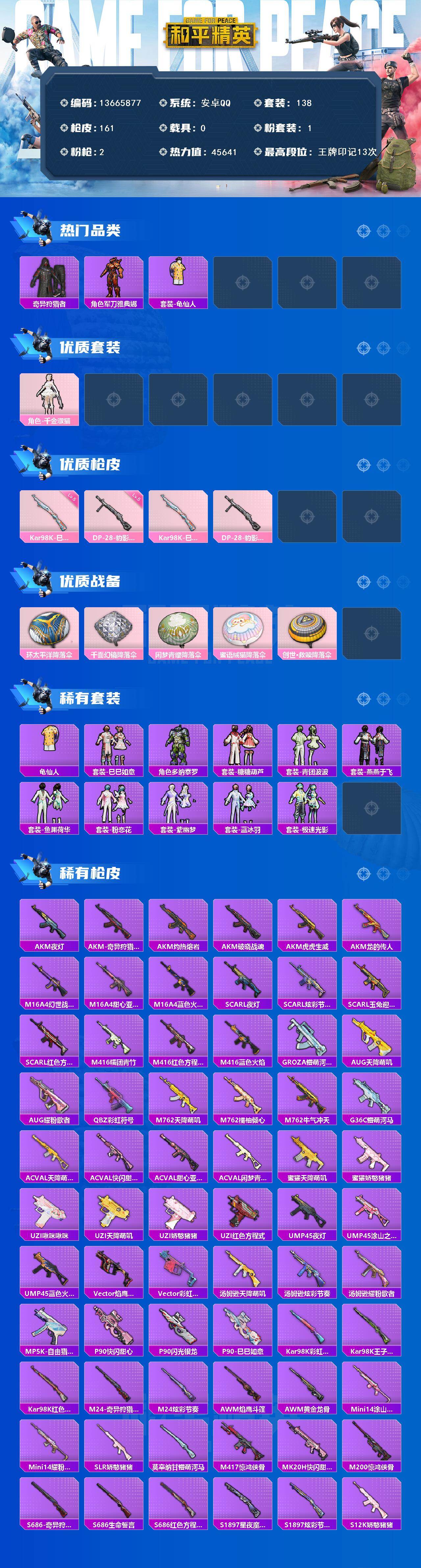 138套装/枪械2/装备189/战备118/王牌印记13/热力值45641/五