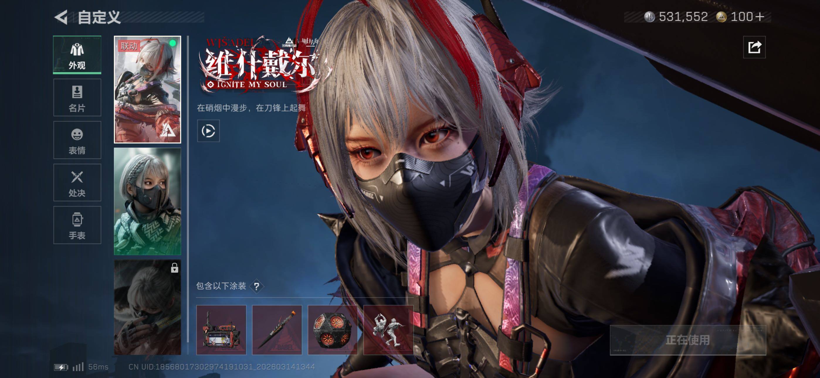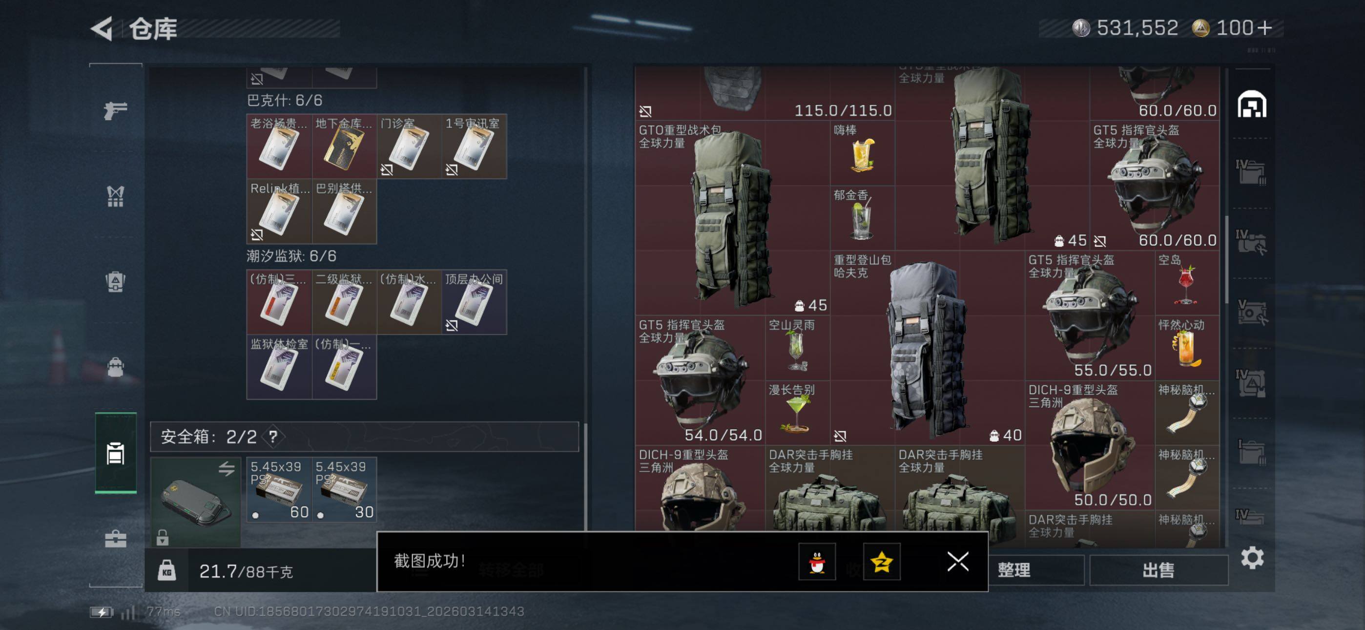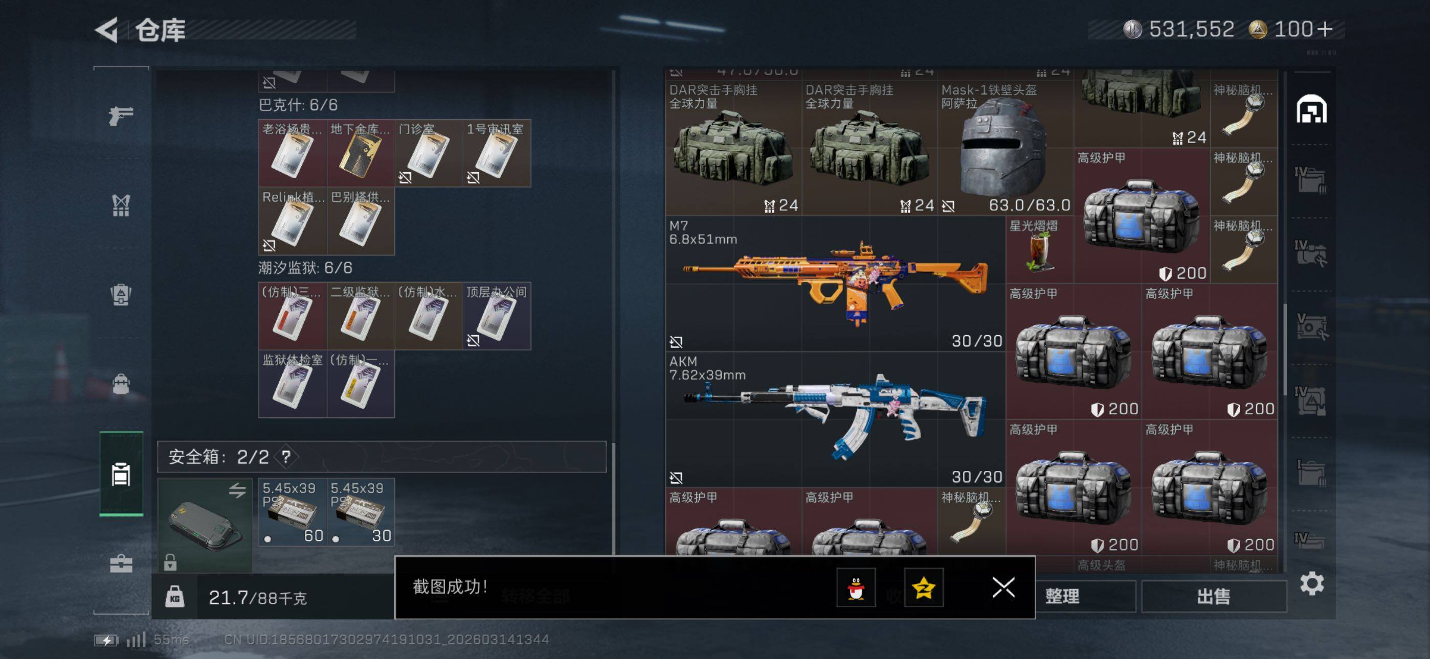 等级:60总资产:209.9M 纯币531552 红皮:维什戴尔 刀皮 暗星 信条 特勤处:仓库8,训练7,靶场7 部门23333 红狼-电锯惊魂