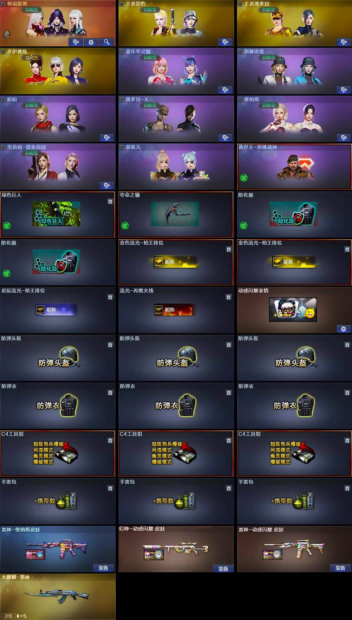【角色】:王者影豹,王者潘多拉,乔伊教练,嘉年华灵狐,疾风,荆棘玫瑰,娟娟,潘多拉-X,维纳斯,雪莉杨-摸金校尉,游珑儿