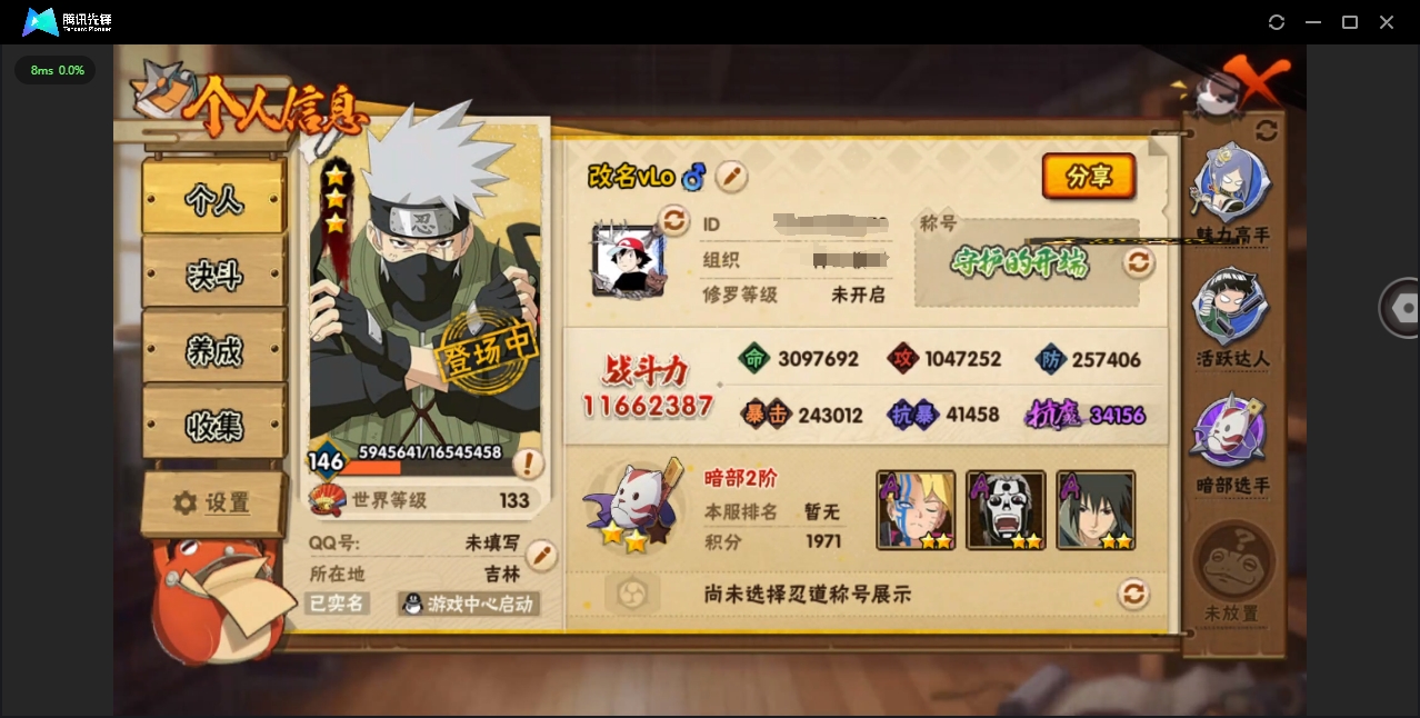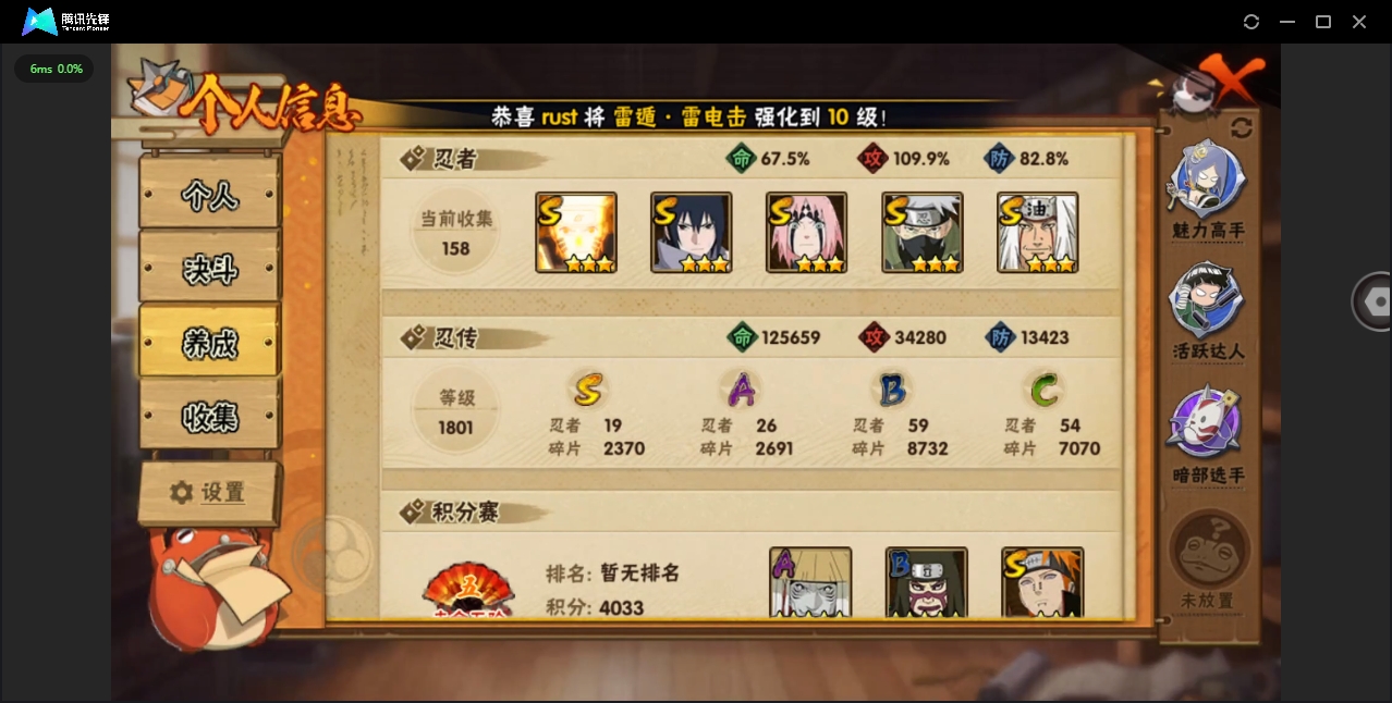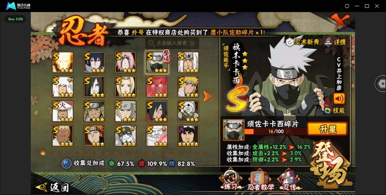 【编号20990可秒换绑】【店长推荐精品号!】19S级忍者数-26A级忍者数【S级忍者】:猿飞日斩「秽土转生」(3星),千手扉间「秽土转生」(3星),宇智波斑「秽土转生·解」(3星),春野樱「忍界大战」(3星),艾「忍界大战」(3星),旗木卡卡西「须佐能乎」(3星),自来也(3星),自来也「舞之豪杰」(3星),大蛇丸(3星),纲手(3星),猿飞日斩(3星),波风水门(3星),漩涡鸣人「九喇嘛连结」(3星),迈特凯「死门」(3星),佩恩「天道」(3星),宇智波佐助「永恒万花筒」(3星),宇智波斑