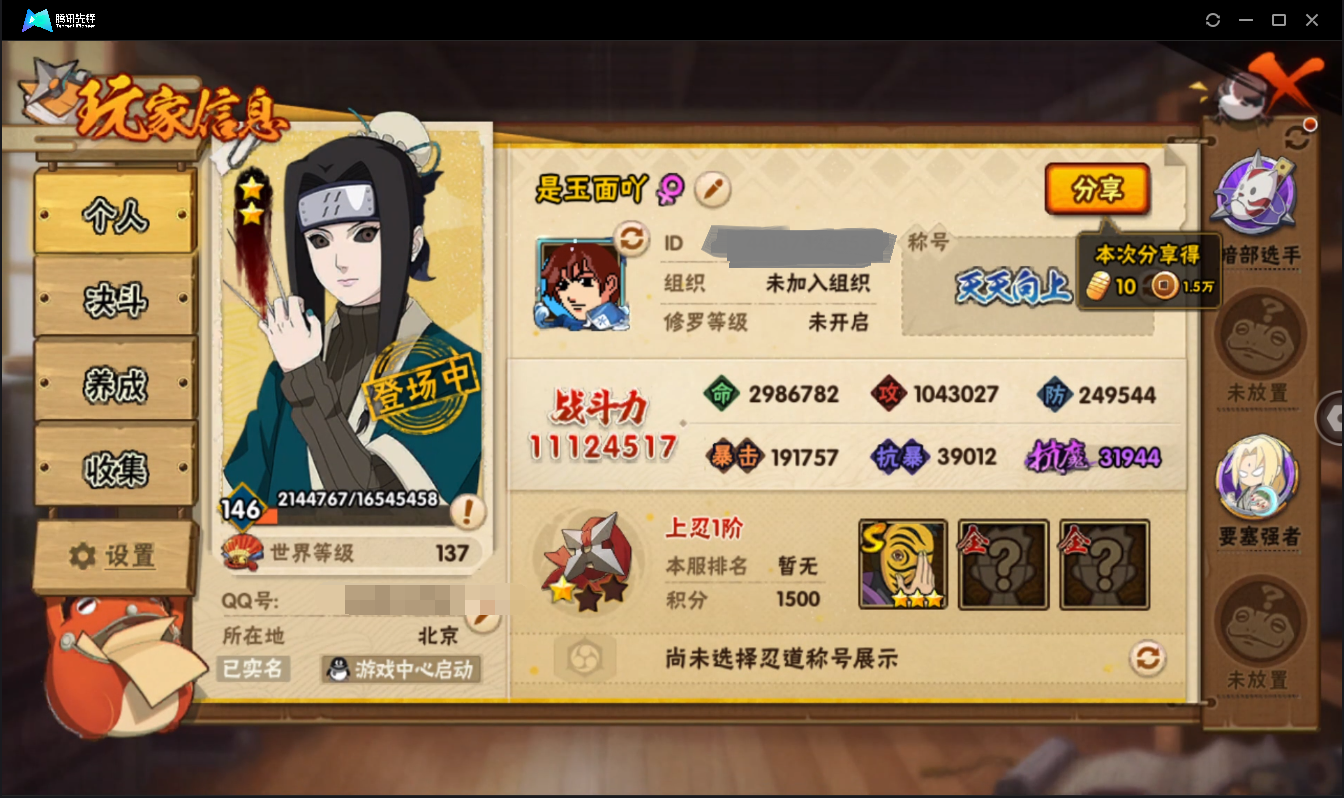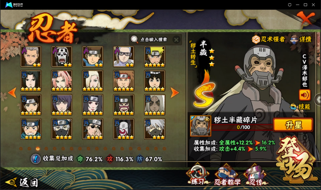【编号 37831 可秒换绑】店长推荐特价处理精品号16S级忍者数-28A级忍者数【S级忍者】:半藏「秽土转生」(3星),波风水门「秽土转生」(3星),宇智波斑「秽土转生」(3星),春野樱「忍界大战」(3星),宇智波鼬「须佐能乎」(3星),千手柱间「木叶创立」(3星),艾「三代目雷影」(3星),自来也(3星),纲手(4星),纲手「百豪」(3星),千手柱间(3星),猿飞日斩(3星),波风水门(3星),神秘面具男「红夜之刃」(3星),宇智波佐助「永恒万花筒」(3星),宇智波斑 「白面具」(3星宇智波