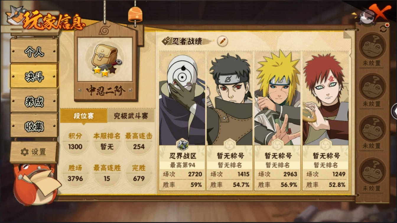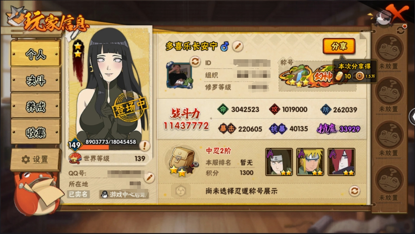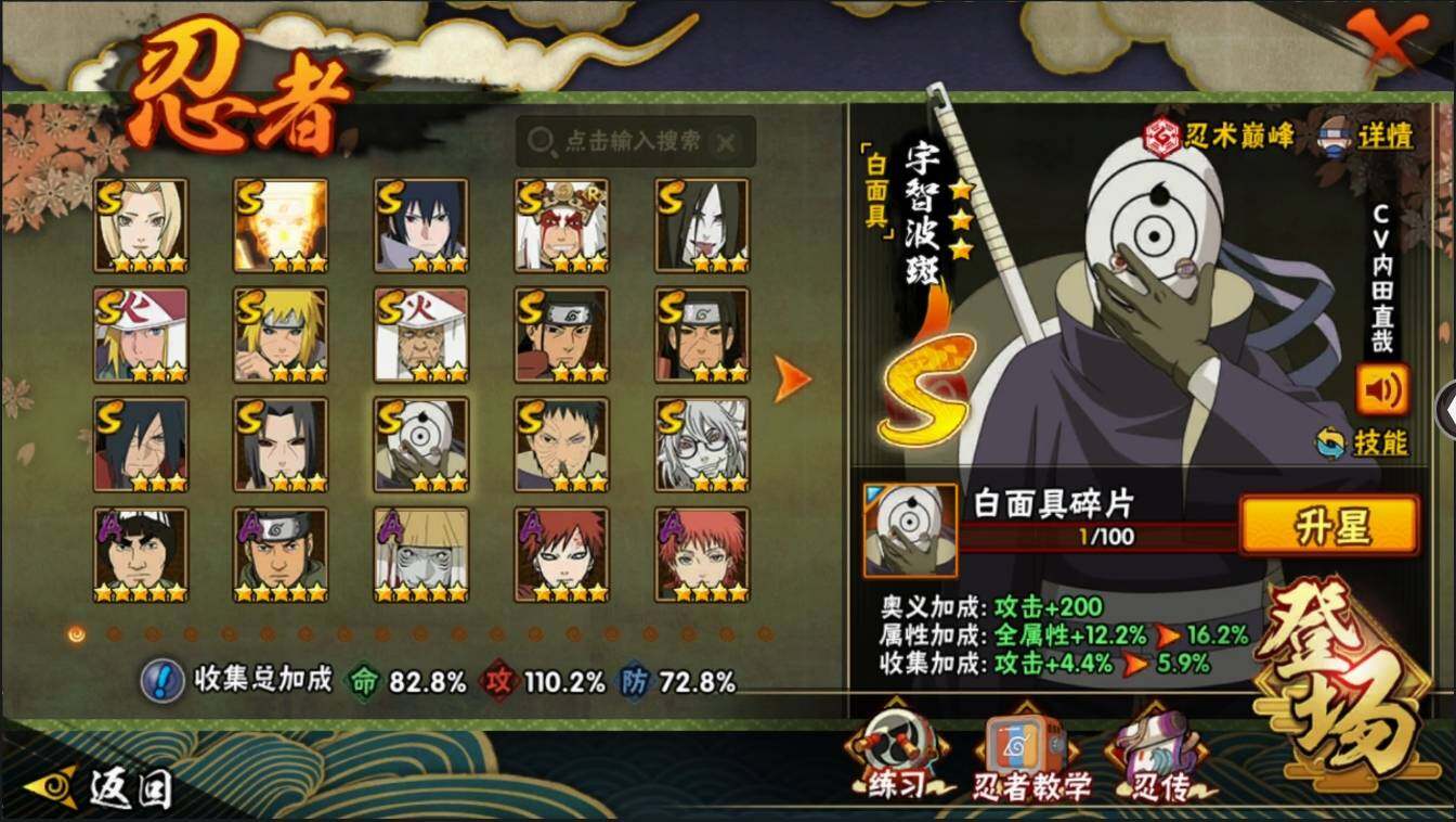 【编号62854可秒换绑】店长推荐特价处理精品号15S级忍者数-29A级忍者数【S级忍者】:波风水门「秽土转生」(3星),千手柱间「秽土转生」(3星),宇智波鼬「秽土转生」(3星),宇智波斑「秽土转生·解」(3星),宇智波带土「忍界大战」(3星),自来也「舞之豪杰」(3星),大蛇丸(3星),纲手(4星),千手柱间(3星),猿飞日斩(3星),波风水门(3星),药师兜「仙人模式」(3星),漩涡鸣人「九喇嘛连结」(3星),宇智波佐助「永恒万花筒」(3星),宇智波斑 「白面具」(3星宇智波斑「白面具」)
