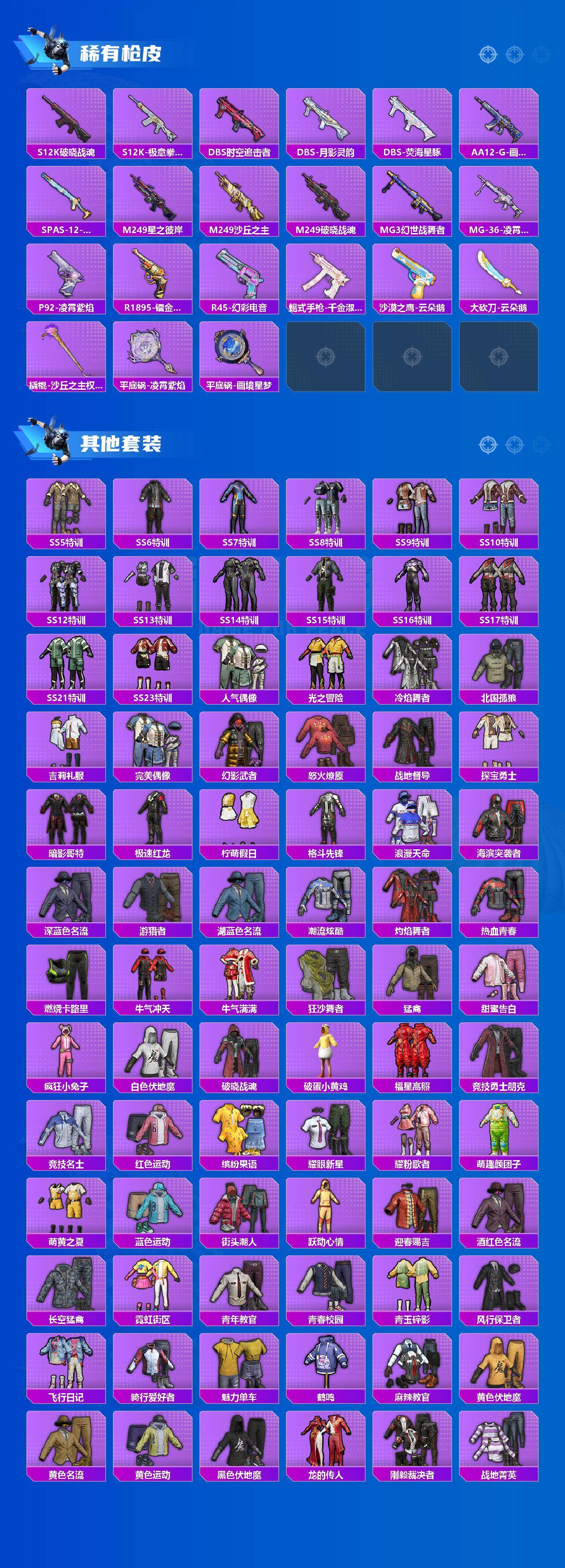 【A8174】苹果【极品神装号 沙丘之主-图卡盟(二级),粉装-梦幻火箭,套装-浪漫天命,套装-小丑鱼,套装-暗影哥特,AKM-幽焰骑士(三级),AUG-星之彼岸(六级),保时捷911 敞篷版(星珀红),保时捷Panamera(星辰紫)】 手Q-1神装-8粉装-21特效枪-3载具-10粉色飞行器-74522热力值-9王牌印记-150套装-225枪皮