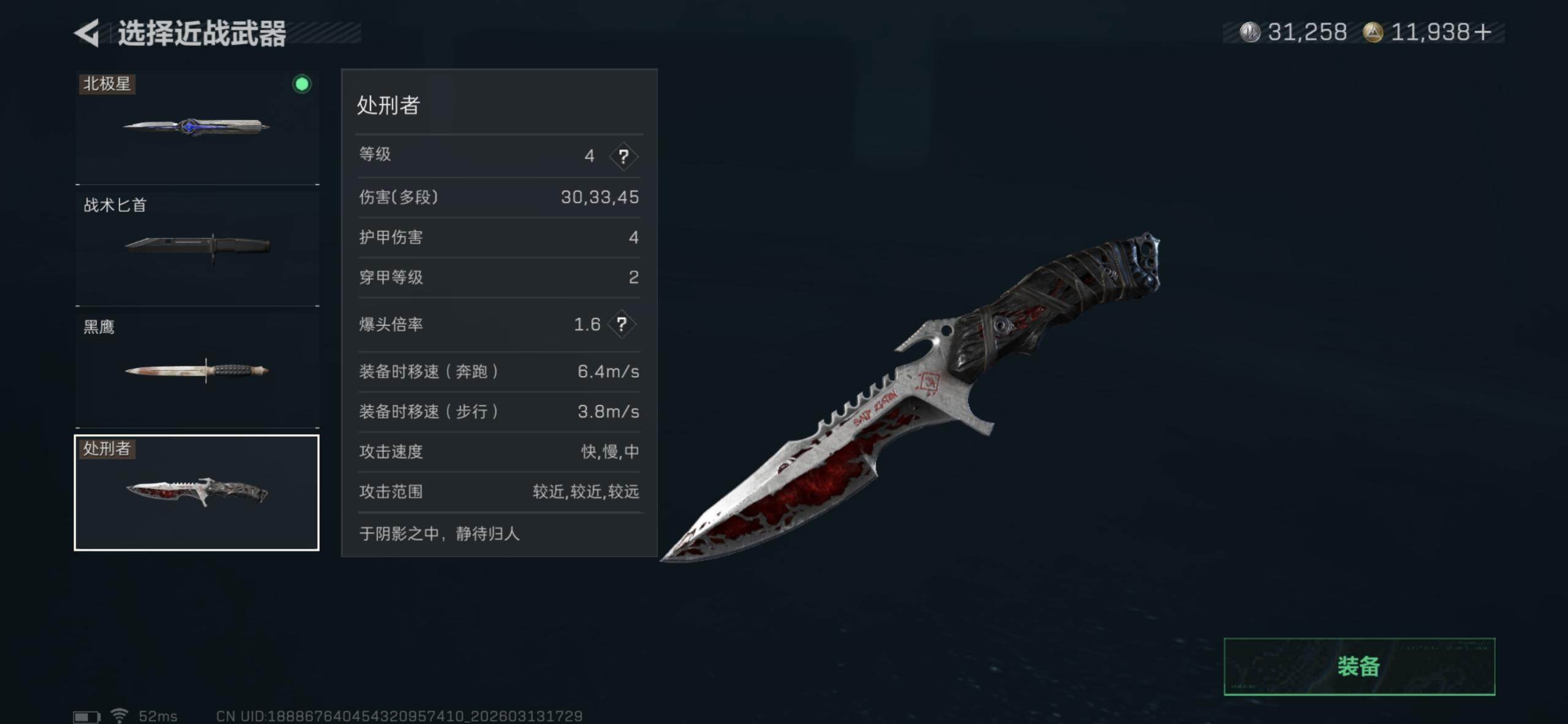 【近战皮肤】:近战-北极星,近战-处刑者4级,近战-黑鹰