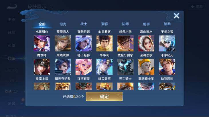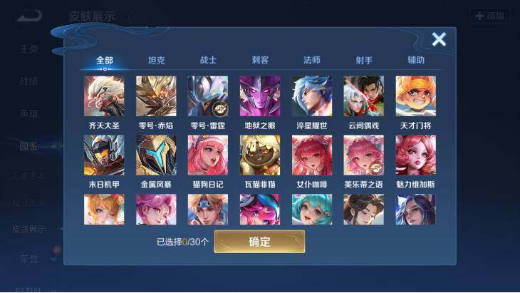 【限定皮肤】:姜子牙天穹之誓,狄仁杰阴阳师,赵云皇家上将,孙尚香蔷薇恋人,庄周高山流水,高渐离玩趣恶龙,元歌云间偶戏,狄仁杰魔术师,狄仁杰万华元夜,项羽海滩派对,老夫子醍醐杖,程咬金演武夺筹,