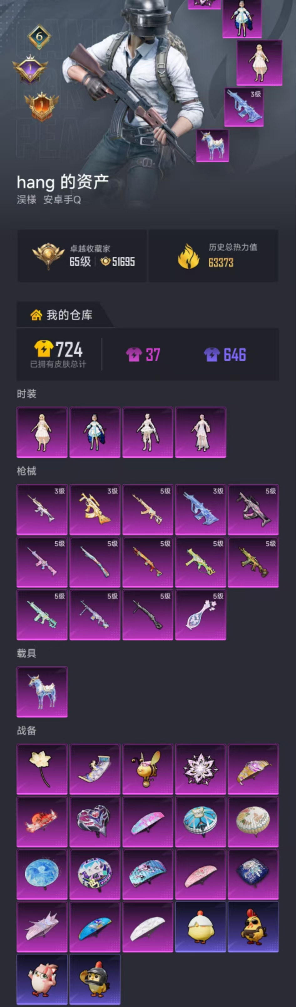 558-【女号星梦奇缘 4粉装14特效枪1载具 可秒换绑不用等】 安卓Q区-63373热力值-115套装-206枪皮 【1载具】 星梦玉骢【4粉装】 洛天依 小叽联名款 角色-烟云彩露 角色-千金淑猫【14特效枪】 燃烧瓶-天降桃花(5级) Mk14-福马献瑞(5级) AA12-G-萌骑幻想(5级) AKS-74U-森灵之息(5级) UMP45-萌骑冒险(5级) ACE32-萌骑漫游(5级) PKM-萌骑夺宝(5级) SCAR-L-灵驹仙姬(3级) M416-电玩时刻(5级) AUG-星梦奇缘(