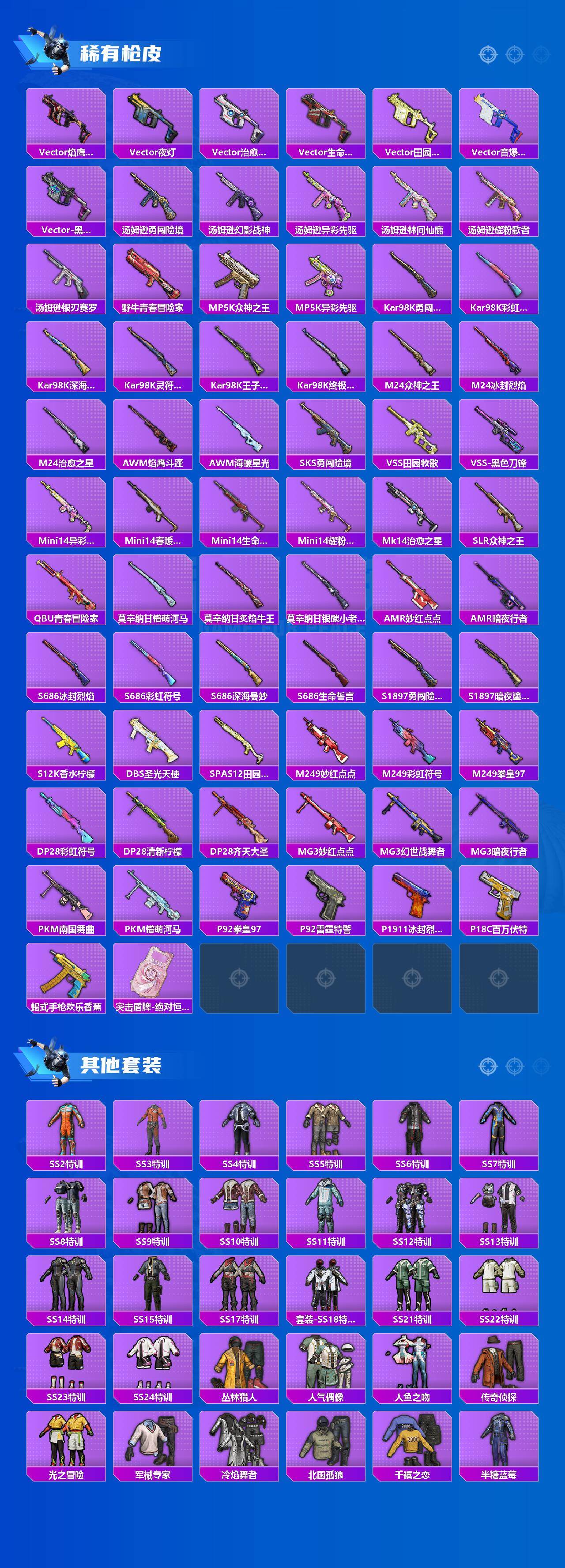 【粉色枪皮等级】:M762-苔丝玫瑰(七级),蜜獾-异瞳寒姬(四级),Kar98K-巳巳如意(四级),SLR-暗夜玫瑰(四级),DP-28-豹影疾电(五级)