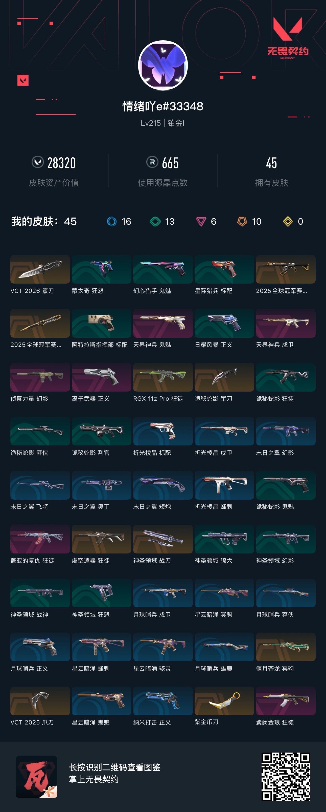 【近战武器】:近战武器-2025全球冠军赛 蝴蝶刀,近战武器-VCT 2026 篆刀,近战武器-VCT 2025 爪刀,近战