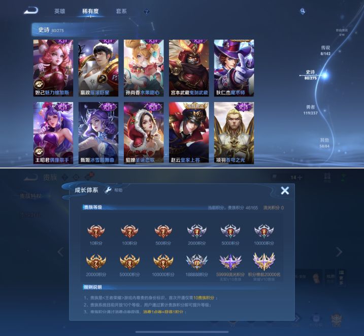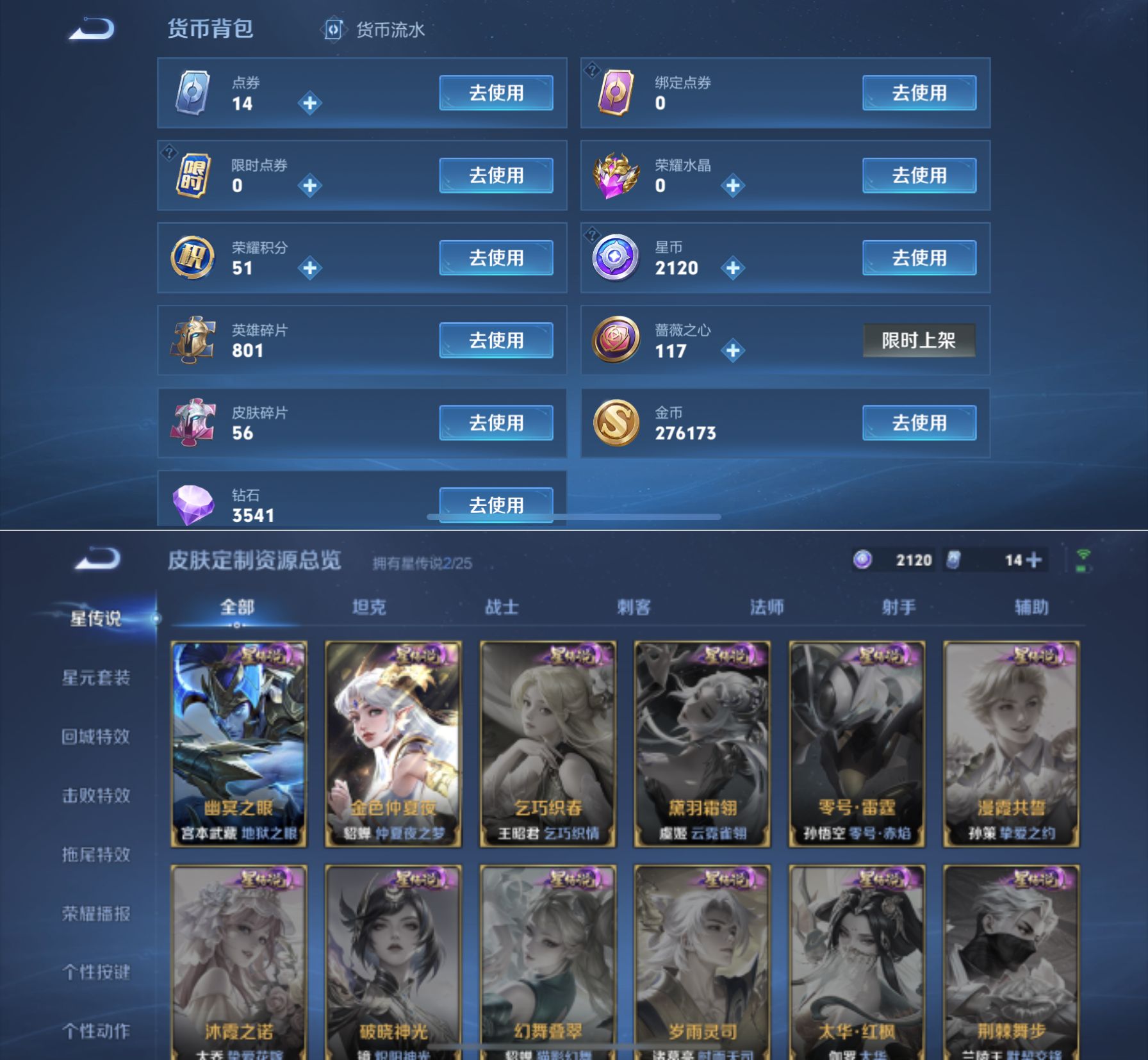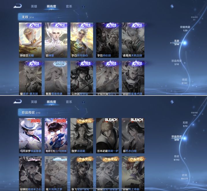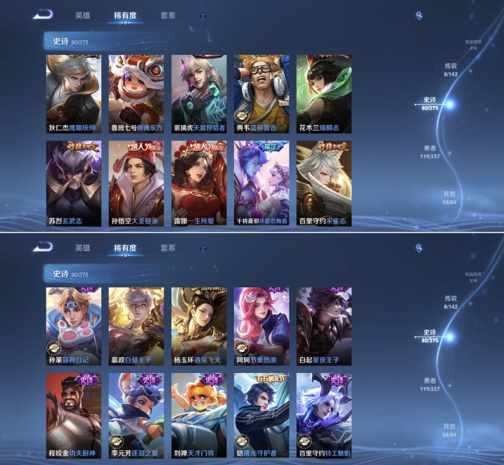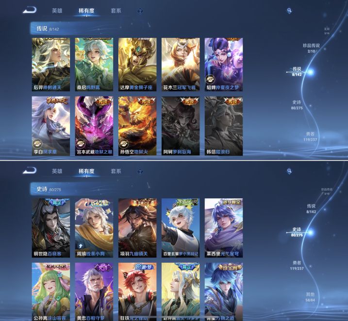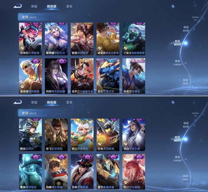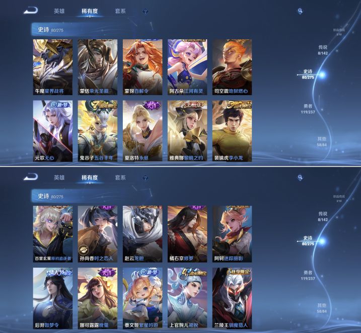 【271皮肤V7差3835点券V8 1典藏 3无双 2珍品 8传说 2星传说 幽